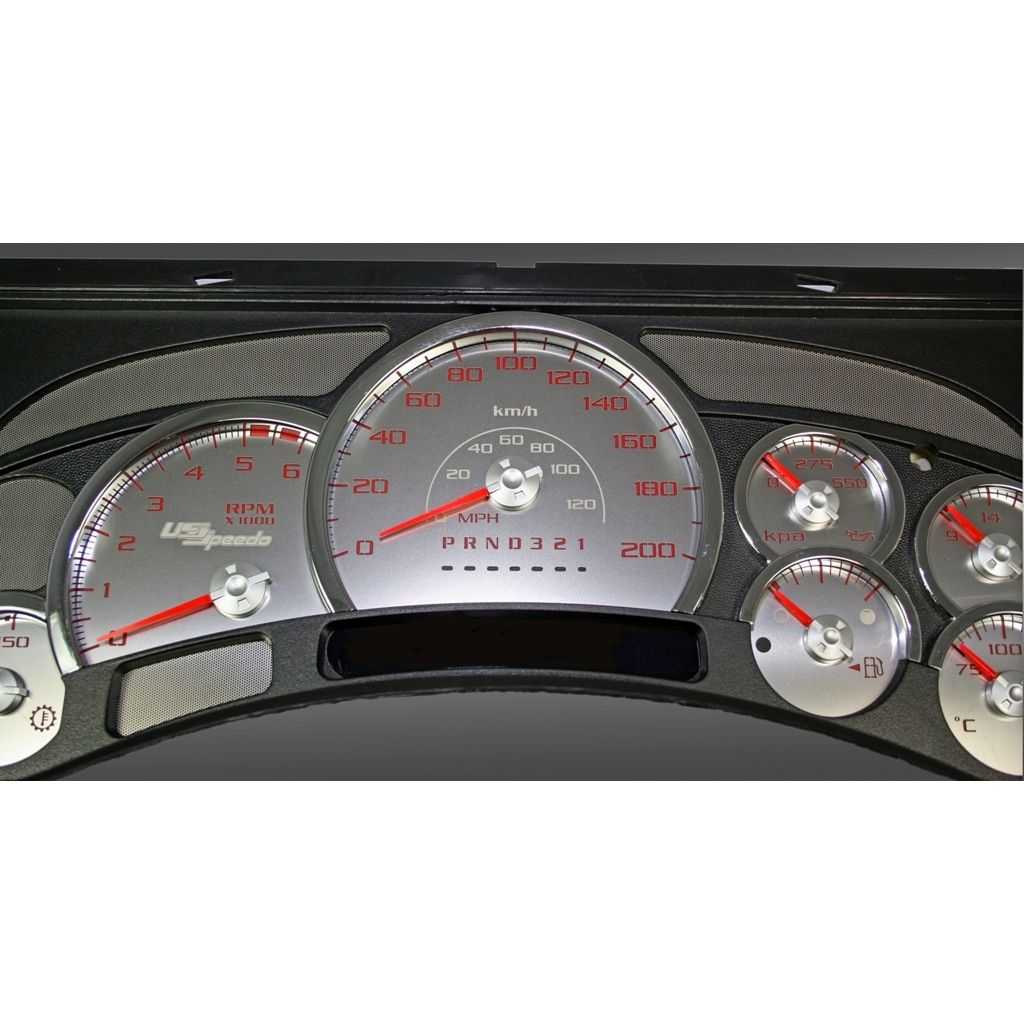 US Speedo Stainless Edition Custom Gauge Face for 2006 to 2007 Hummer H2 Gas KMH R-Red.
