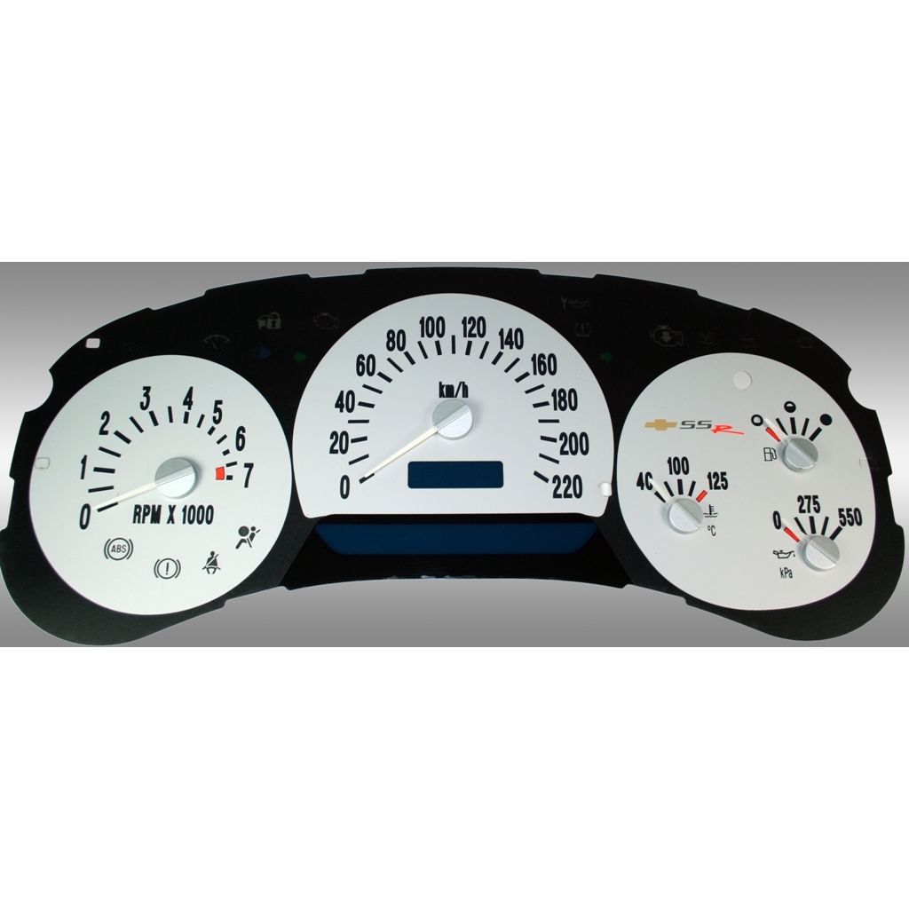 US Speedo Pro Color Edition Custom Gauge Face for 2003 to 2005 Chevrolet SSR Gas KMH 2-Silver.