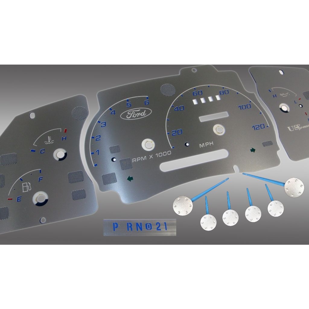 US Speedo Stainless Edition Custom Gauge Face for 1999 to 2003 Ford Ranger/Explorer/Sport Trac Gas MPH B-Blue.