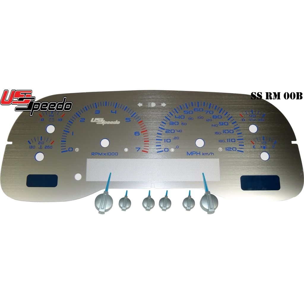 US Speedo Stainless Edition Custom Gauge Face for 1998 to 2001 Dodge Ram Gas Gas MPH B-Blue.