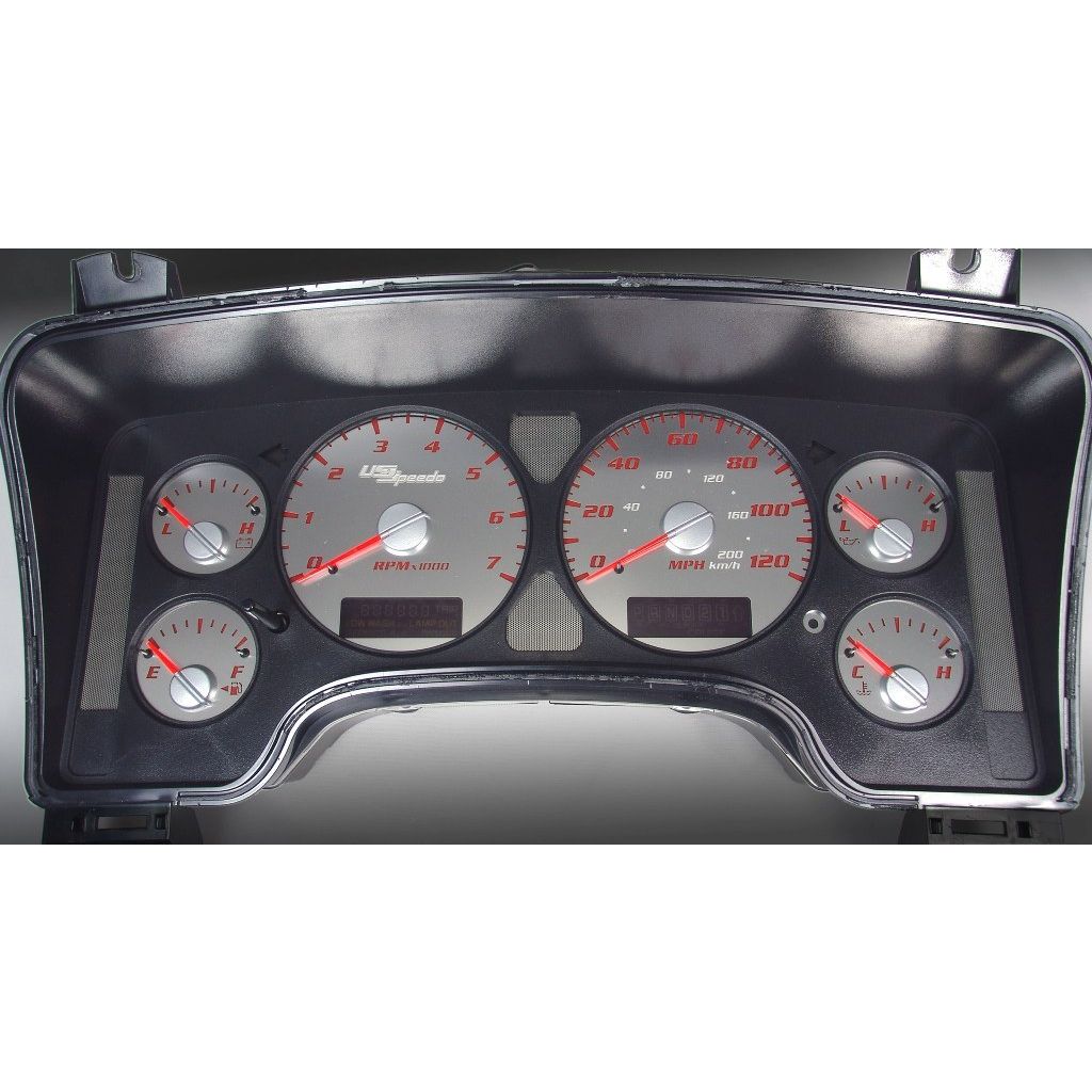 US Speedo Stainless Edition Custom Gauge Face for 2002 to 2005 Dodge Ram Gas Gas MPH R-Red.