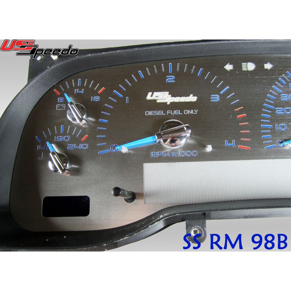 US Speedo Stainless Edition Custom Gauge Face for 1998 to 2002 Dodge Ram Diesel Diesel MPH B-Blue.