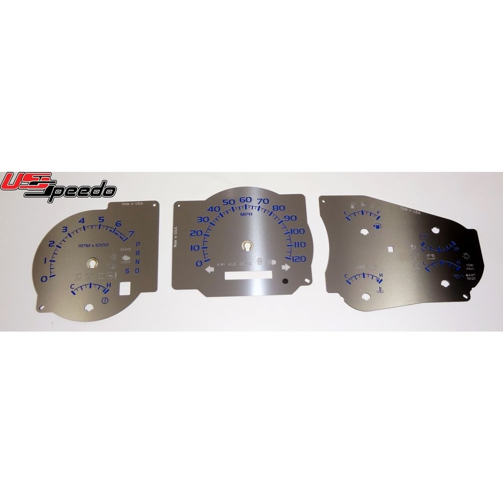 US Speedo Stainless Edition Custom Gauge Face for 2007 to 2010 Toyota Tundra Gas MPH B-Blue.