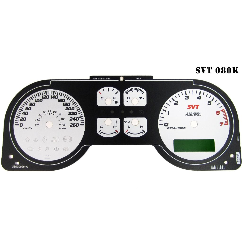 US Speedo Pro Color Edition Custom Gauge Face for 2005 to 2009 Ford Mustang SVT Gas KMH 0-White.