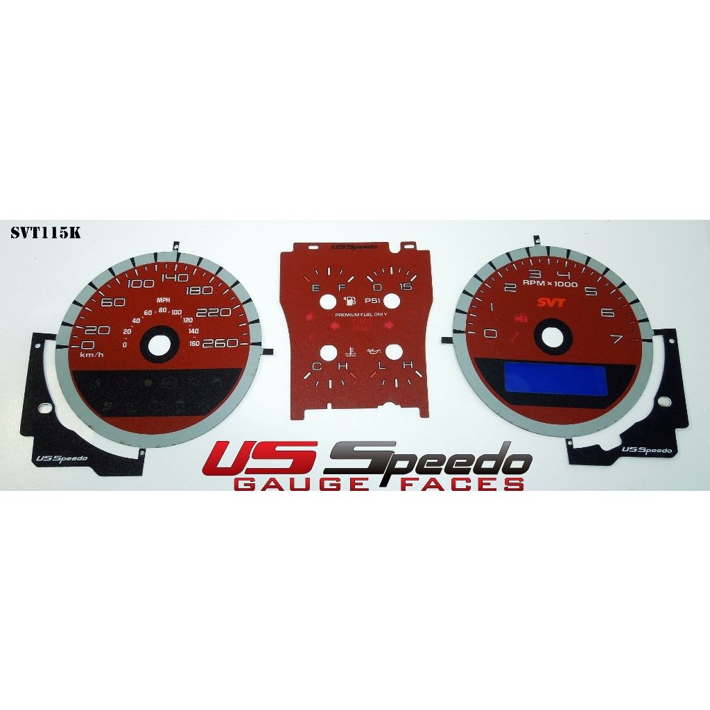 US Speedo Pro Color Edition Custom Gauge Face for 2010 to 2012 Ford Mustang SVT Gas MPH 5-Red.