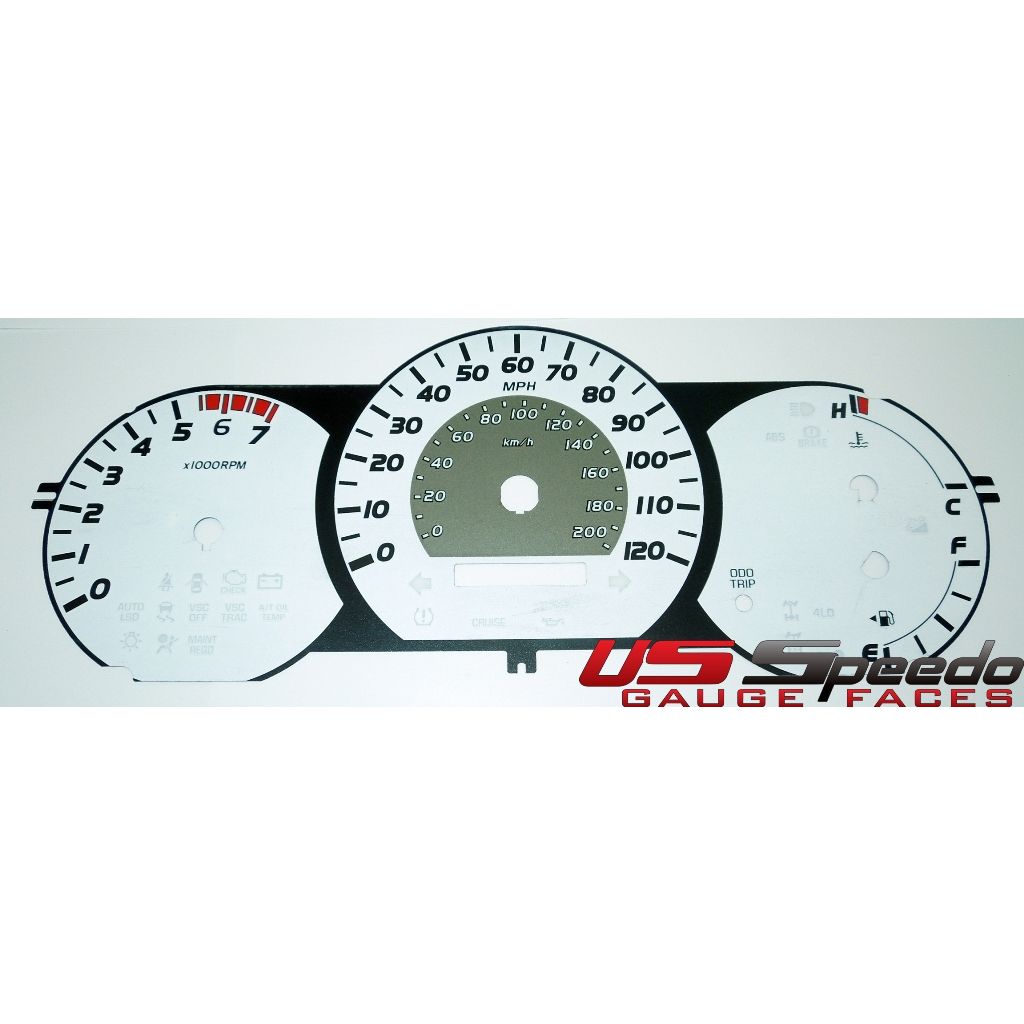 US Speedo Pro Color Edition Custom Gauge Face for 2005 to 2008 Toyota Tacoma Gas MPH 0-White.