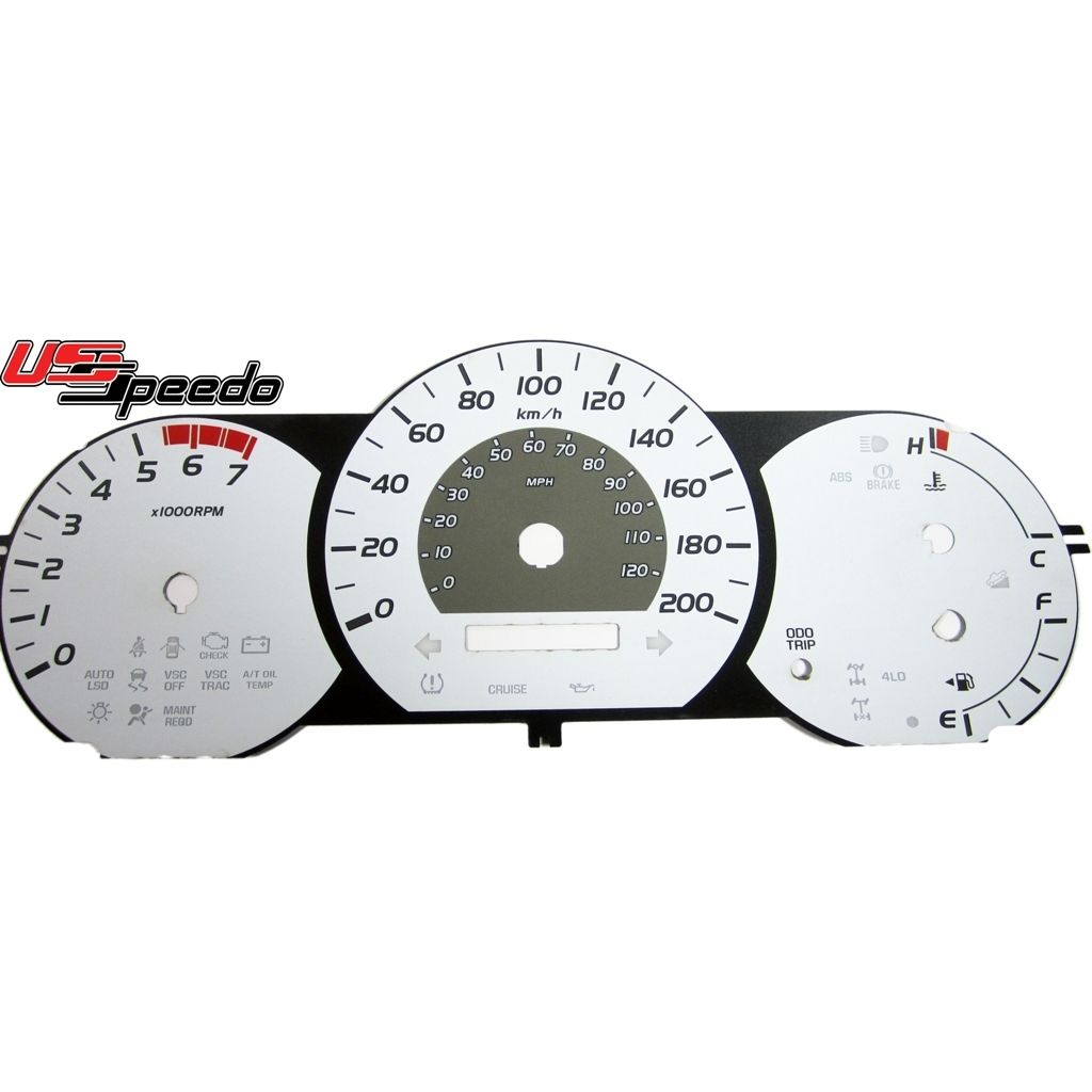 US Speedo Pro Color Edition Custom Gauge Face for 2005 to 2008 Toyota Tacoma Gas KMH 0-White.