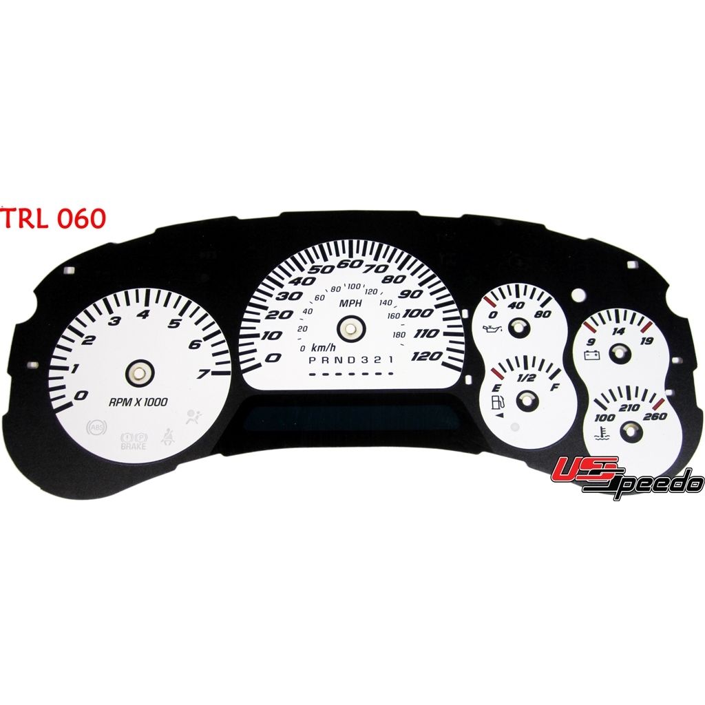 US Speedo Pro Color Edition Custom Gauge Face for 2006 to 2009 Chevrolet/GMC Trailblazer/Envoy Gas MPH 0-White.