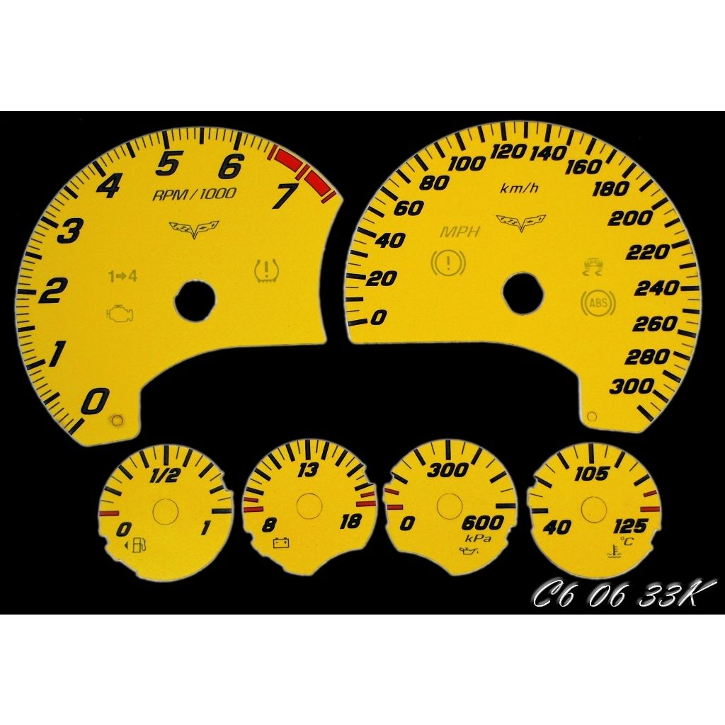 US Speedo Pro Color Edition Custom Gauge Face for 2005 to 2013 Chevrolet Corvette C6 Gas KMH 3-Yellow.