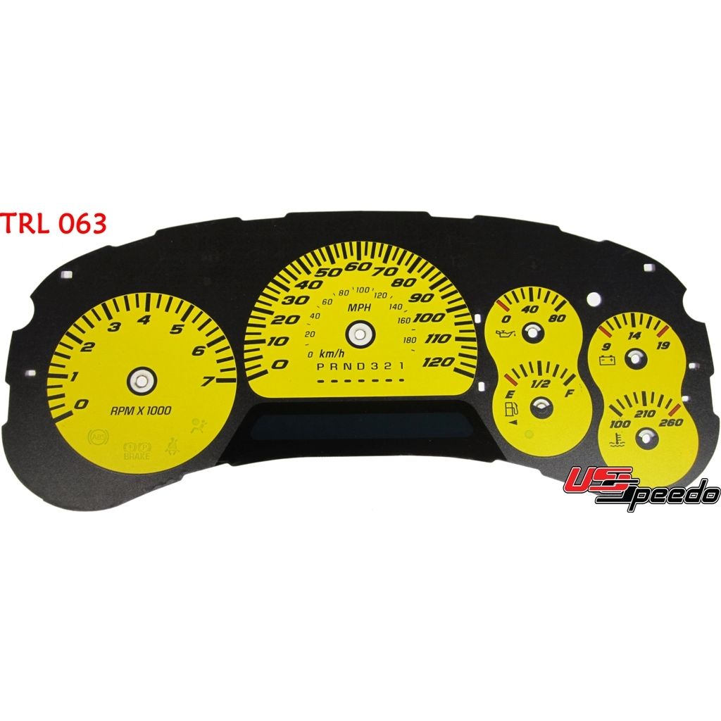 US Speedo Pro Color Edition Custom Gauge Face for 2006 to 2009 Chevrolet/GMC Trailblazer/Envoy Gas MPH 3-Yellow.