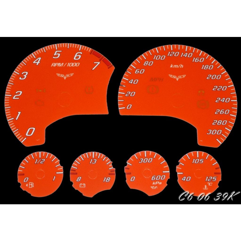 US Speedo Pro Color Edition Custom Gauge Face for 2005 to 2013 Chevrolet Corvette C6 Gas KMH 9-Orange.