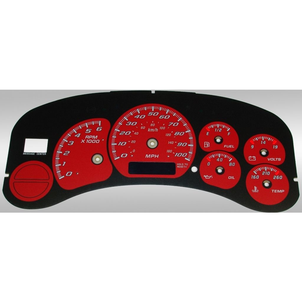 US Speedo Pro Color Edition Custom Gauge Face for 1999 to 2002 Chevrolet/GMC Truck & SUV Gas MPH Red.