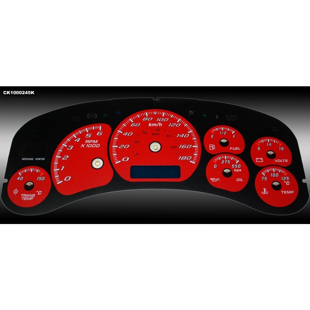 US Speedo Pro Color Edition Custom Gauge Face for 1999 to 2002 Chevrolet/GMC Truck & SUV Gas w/ Trans Temp KMH Red.