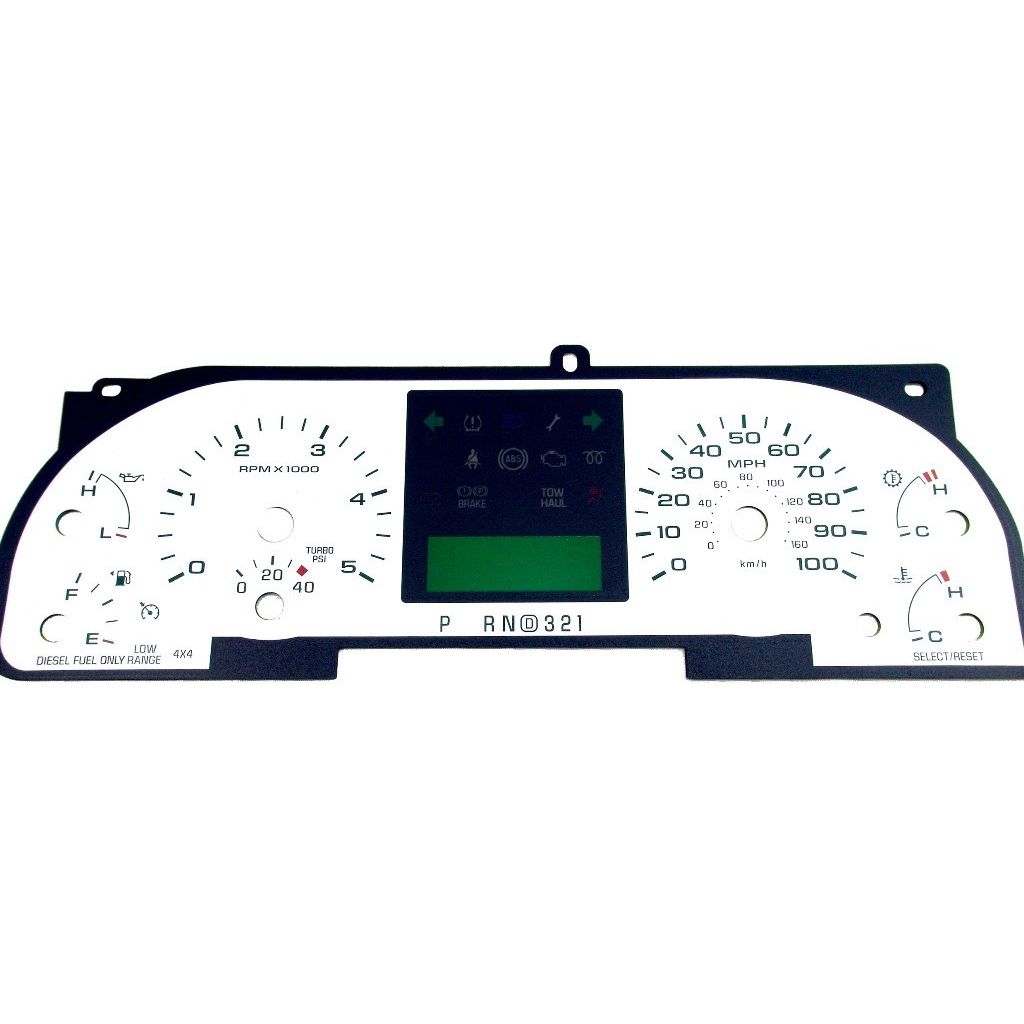 US Speedo Pro Color Edition Custom Gauge Face for 2005 to 2007 Ford F250/F350 Diesel XLT/FX4 Diesel MPH 0-White.