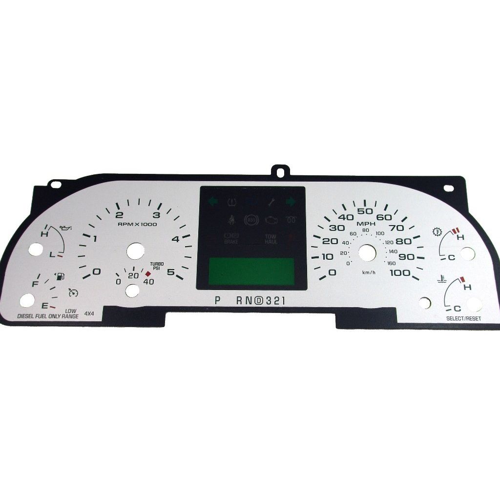 US Speedo Pro Color Edition Custom Gauge Face for 2005 to 2007 Ford F250/F350 Diesel XLT/FX4 Diesel MPH 2-Silver.