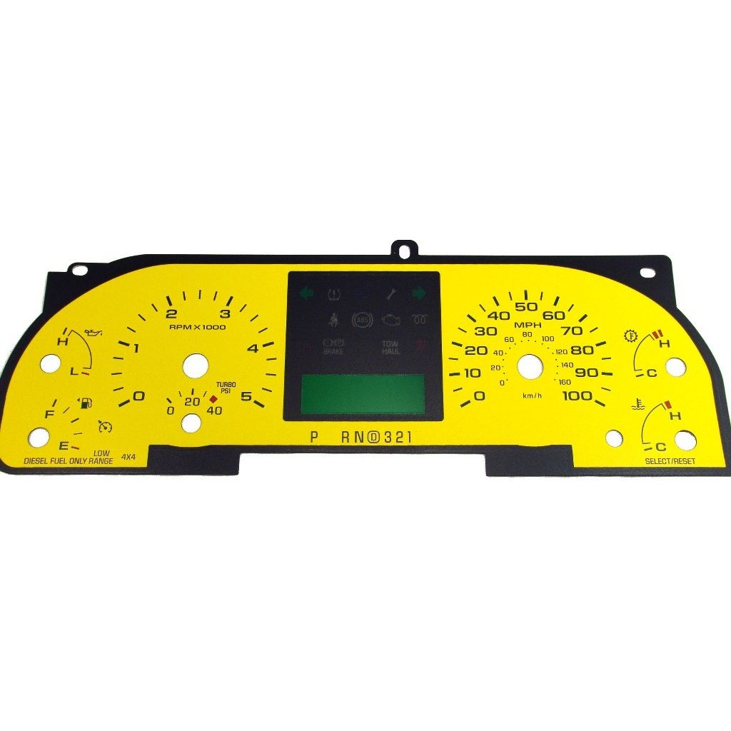 US Speedo Pro Color Edition Custom Gauge Face for 2005 to 2007 Ford F250/F350 Diesel XLT/FX4 Diesel MPH 3-Yellow.