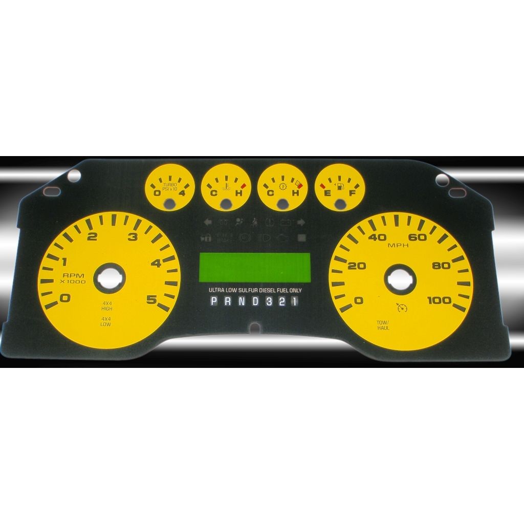US Speedo Pro Color Edition Custom Gauge Face for 2008 to 2010 Ford F250/F350 Diesel XLT/FX4 Diesel MPH 3-Yellow.