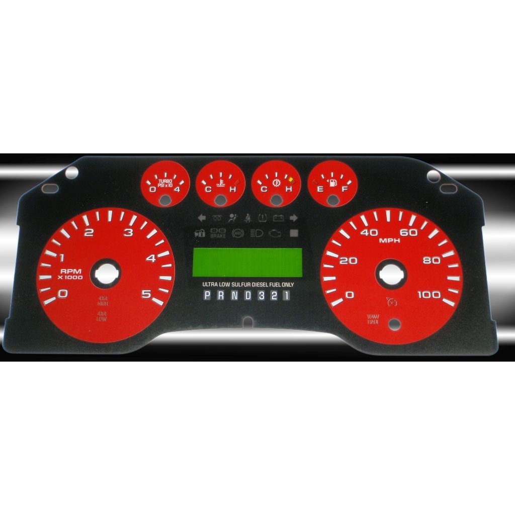 US Speedo Pro Color Edition Custom Gauge Face for 2008 to 2010 Ford F250/F350 Diesel XLT/FX4 Diesel MPH 5-Red.