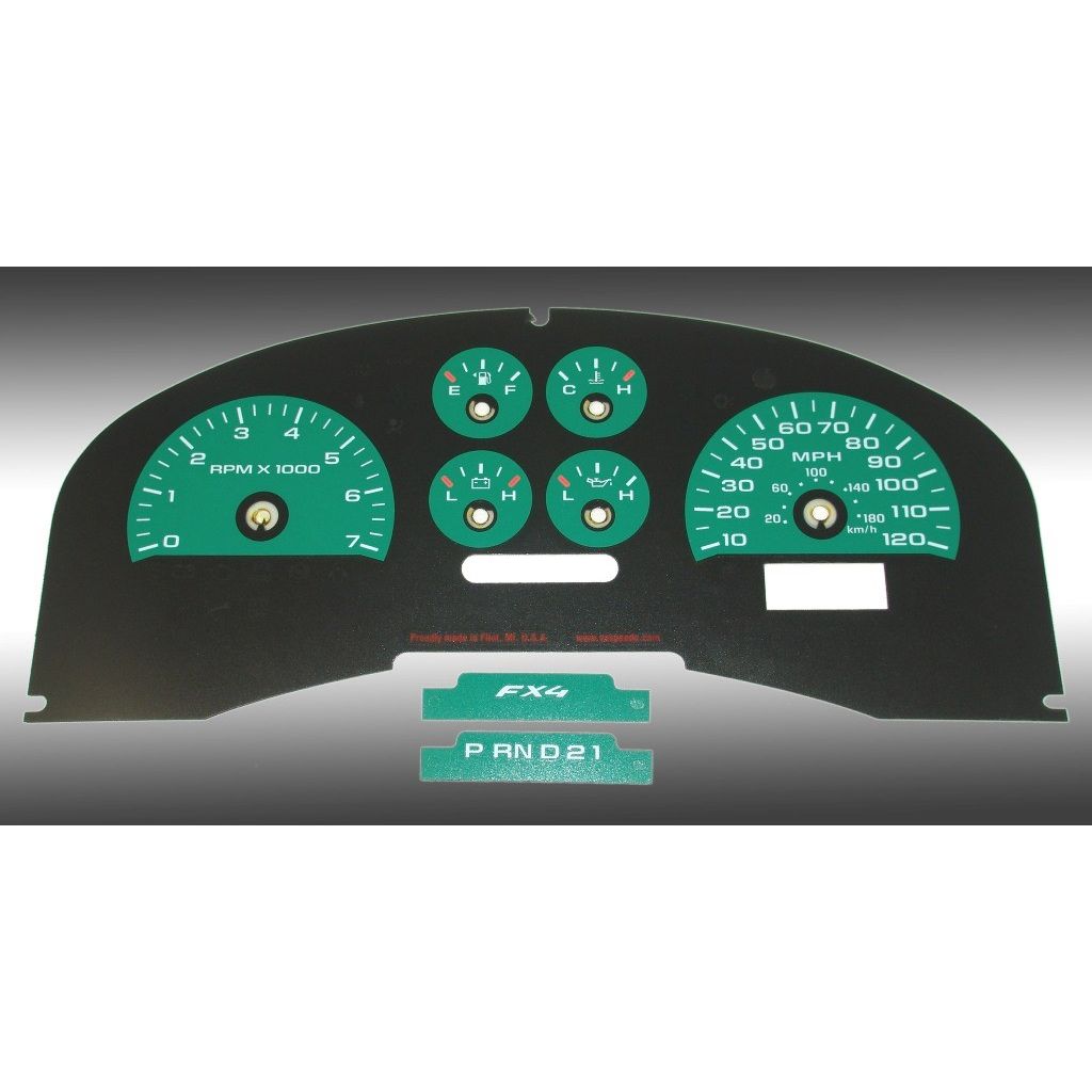 US Speedo Pro Color Edition Custom Gauge Face for 2007 to 2008 Ford F150 FX4 Gas MPH 11-Green.