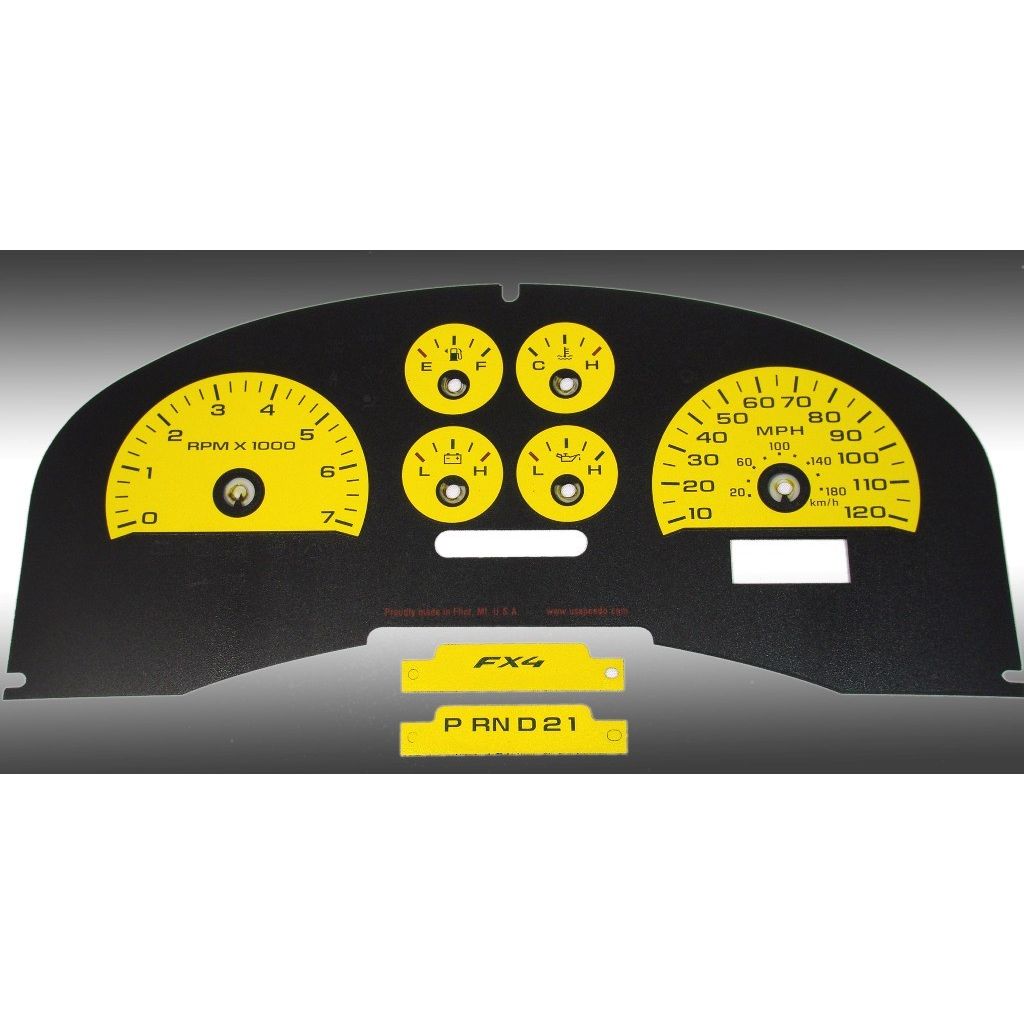 US Speedo Pro Color Edition Custom Gauge Face for 2007 to 2008 Ford F150 FX4 Gas MPH 3-Yellow.