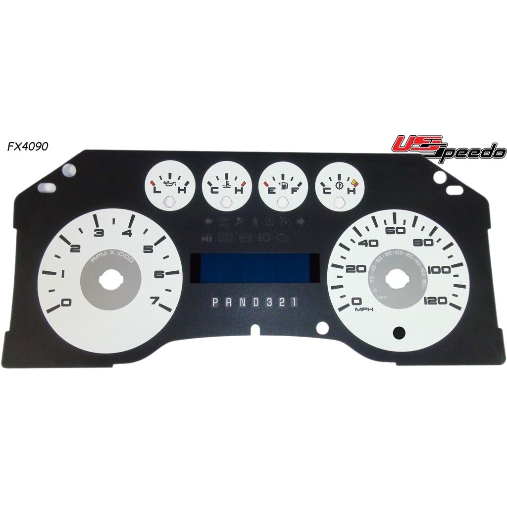 US Speedo Pro Color Edition Custom Gauge Face for 2009 to 2010 Ford F150 XLT/FX4 Gas KMH 0-White.