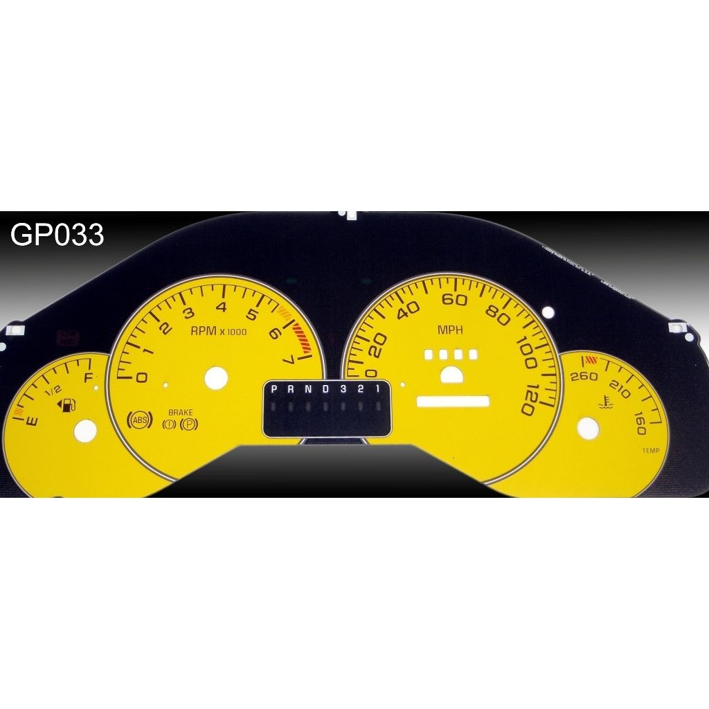 US Speedo Pro Color Edition Custom Gauge Face for 1999 to 2003 Pontiac Grand Prix Gas MPH 3-Yellow.
