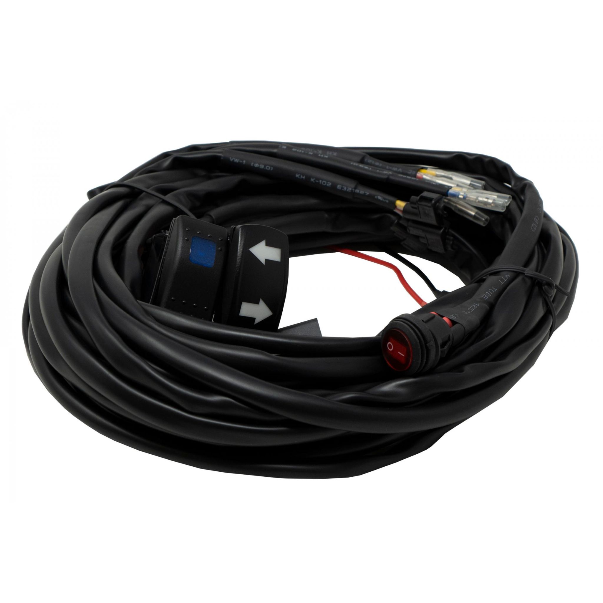 The harness comes complete with a blue backlit rocker switch which flashes to indicate the direction you are turning. This switch is designed to install directly into your factory dash location. The harness comes equipped to power all the functions; running light, brake, and cargo/reverse light.
