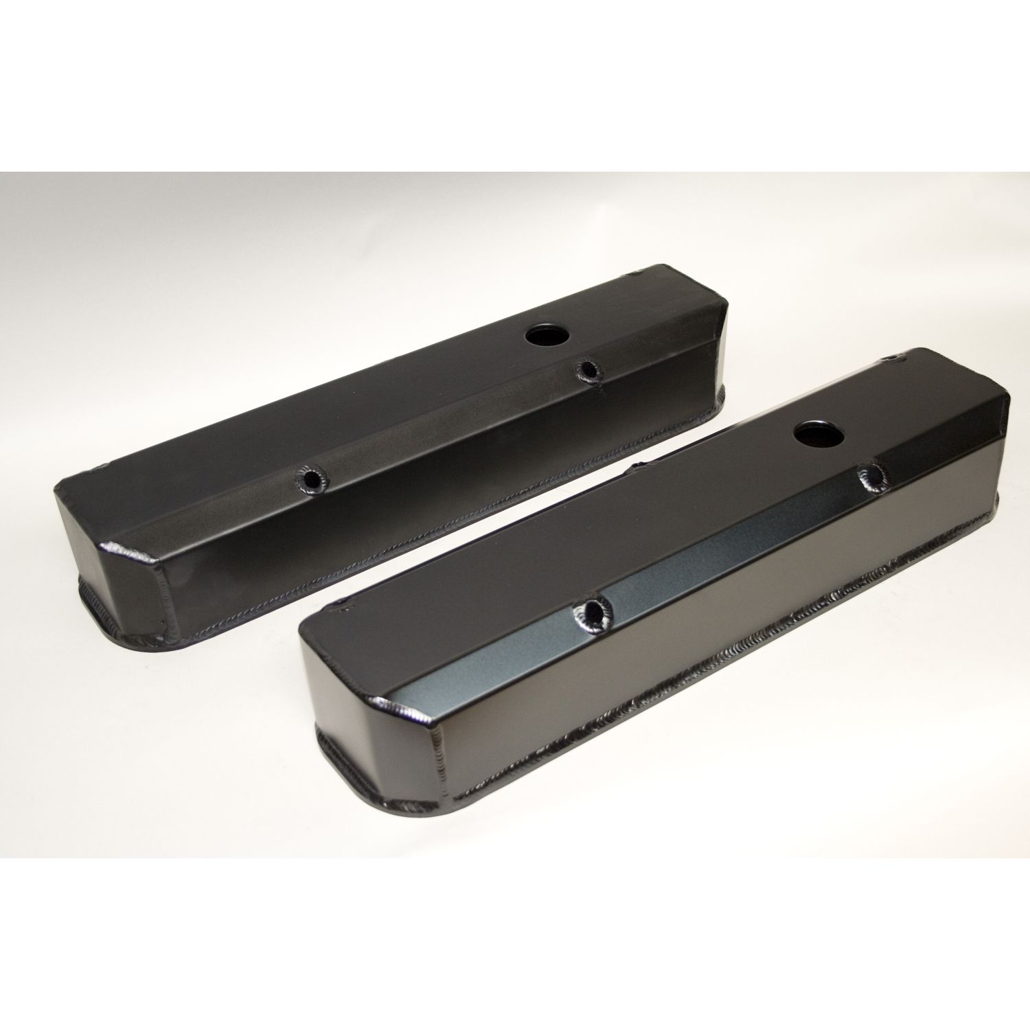 Valve Cover Set, Aluminum, Fabricated Billet Rail, w/Vent Hole, Satin Black Anodized.