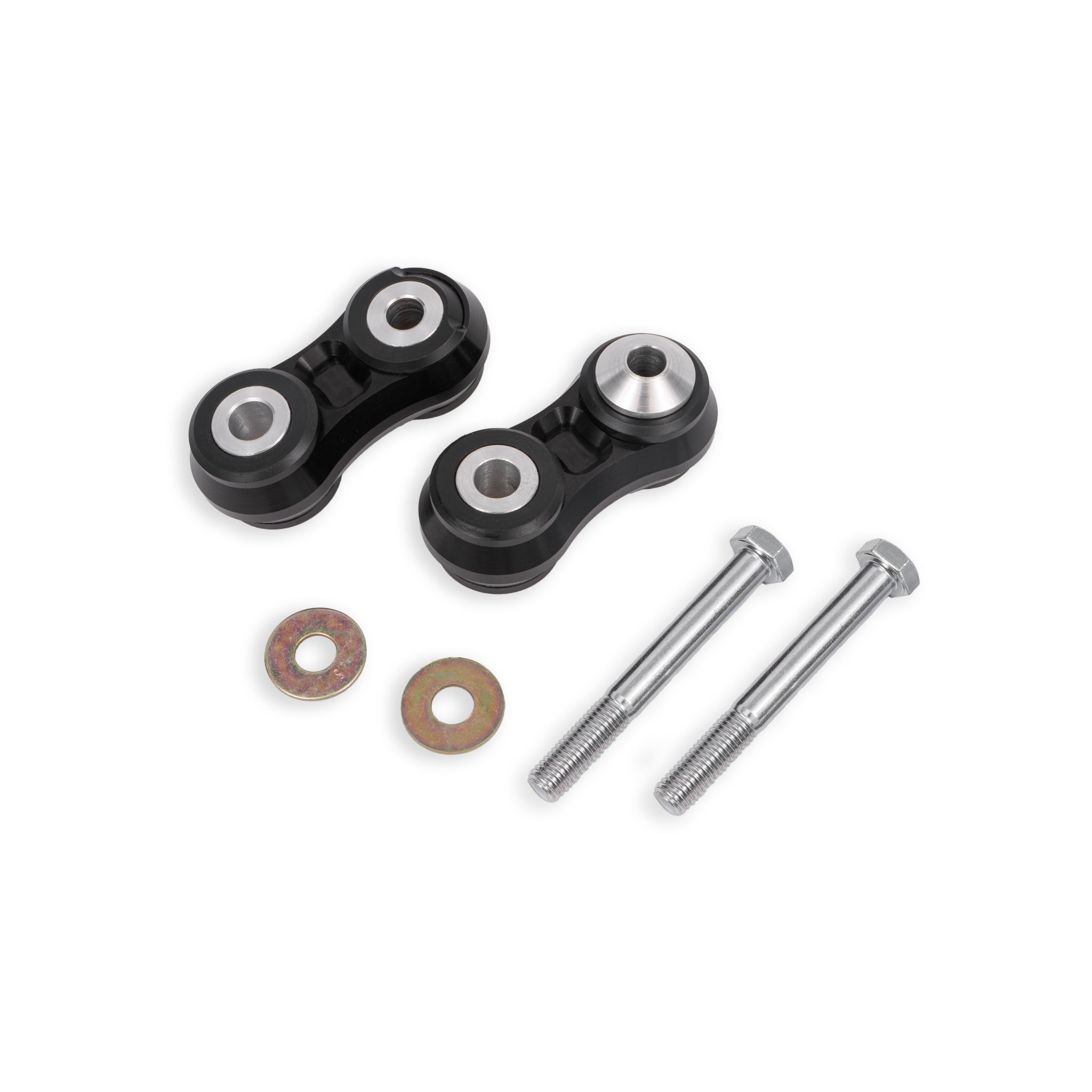Launching harder, reducing wheel hop, and adding cornering consistency to your 2020-2022 S550 GT500 Mustang and 2024 Performance pack and Dark horse Mustang is easy with billet aluminum vertical links from BMR Suspension. Stock stamped steel vertical links with soft rubber bushings deflect under load and absorb power instead of transferring it to the tires. BMRs Delrin, billet aluminum vertical links (VL765) are CNC-machined from 6061-T6 billet aluminum. This design gives you a strong control arm that greatly improves performance with zero deflection and loads of adjustability. BMR Suspension designed the VL765 to excel in street performance, drag race, and road race applications. The stock vertical links flex under cornering loads giving you inconsistent handling characteristics. Combine this with soft bushings that have massive amounts of deflection, and youre left with poor performance. The VL765s heavy-duty construction eliminates vertical link flex, giving you much improved repeatability on the street, starting line, or in the corners. BMRs Delrin bushings are designed to solidly link the spindle to the lower control arm, eliminate deflection and wheel alignment changes. Our lightweight Delrin will stand up to high loads of any performance environment. These are the perfect upgrade for the enthusiast looking to greatly improve performance without NVH levels being a concern. When performance is a must, rely on BMR Suspension! BMR Suspensions VL765 billet aluminum Delrin Vertical Links are black anodized for long-lasting good looks. Installation time is about 1 hour. Proudly made in the U.S.A. NOTE: These only fit 2020-2022 S550 GT500 Mustangs and 2024 Performance pack and Dark horse Mustangs! When installing the VL765 Delrin Vertical Links, BMR highly recommends specific supporting mods to reduce rear toe change. Calls our tech department for more information.