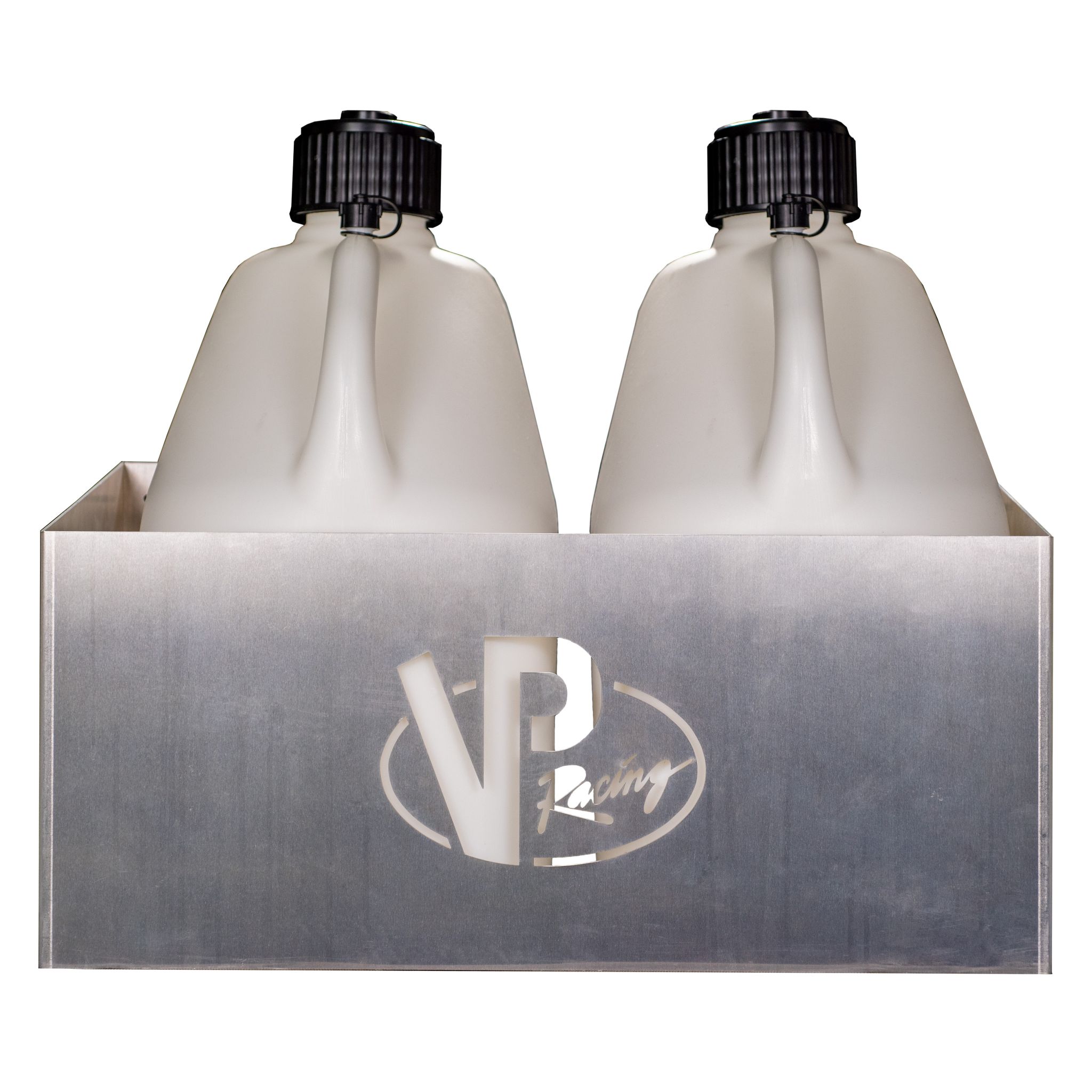 VP Racing jug holder great for storing two 5 gallon Motorsport Containers or similar size jugs. It's crafted from sturdy, lightweight aluminum and designed to optimize shop or shed storage. It has two pre-drilled holes and is simple to mount on your garage or shop wall. Screws and mounting hardware are not included.