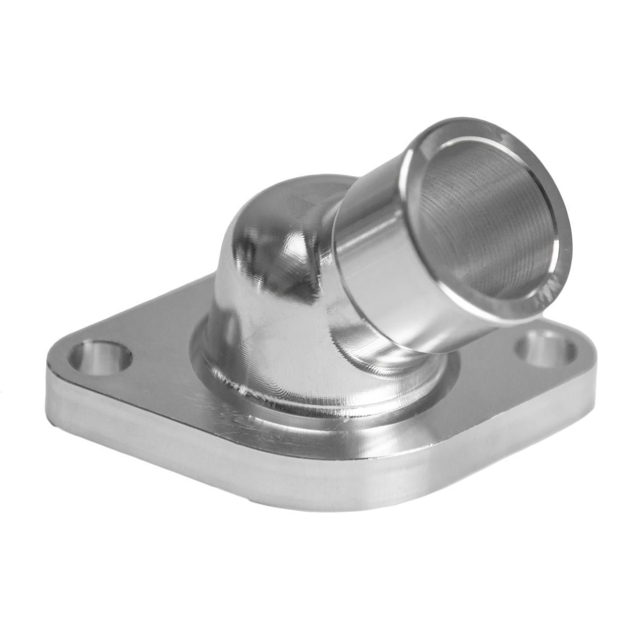Billet Thermostat Housings CNC Machined in the USA from 6061-T6 Aluminum Available in Polished, Black or Clear Coated. Includes Mounting Hardware and O-Ring for a Clean Seal