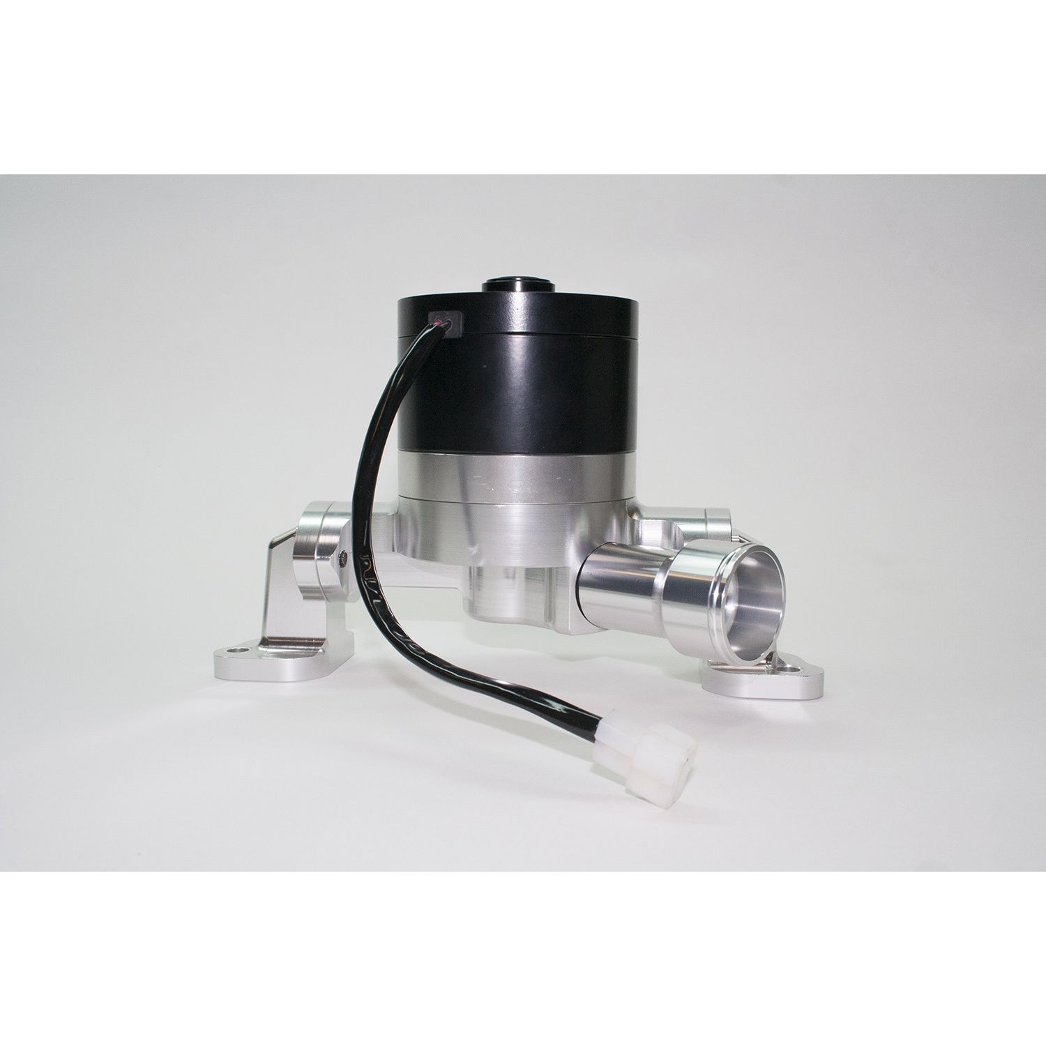 The electric water pump was designed to alleviate the power drag produced by conventional pulley drive units. A heavy duty electric motor, turning at approximately 1,500 rpm, is more than adequate to fulfill cooling needs without draining horsepower from the engine. The unit can be wired to operate manually, even with the engine off. The motor life is rated at 2,750 hours of continuous operation at 176 F. Kit is complete with gaskets, billet aluminum inlet fitting, mounting hardware, pigtail connector, and timing cover block-off plate (Ford Applications).