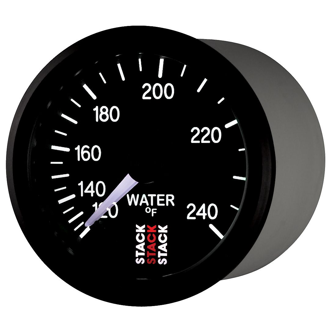 Stack Instruments Series, Gauge, Water Temp, Mechanical, 52mm, Black, 120-240 Degrees F, 1/2" Npt (M)