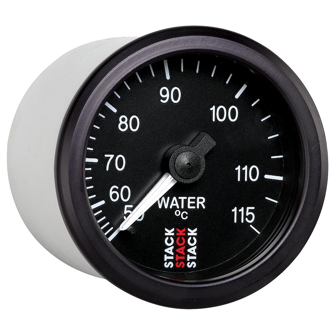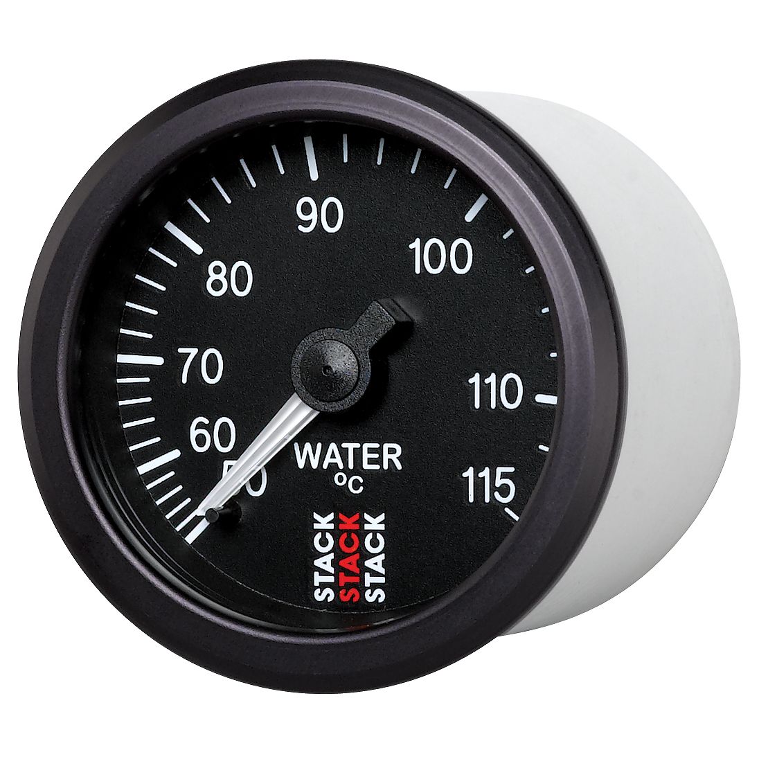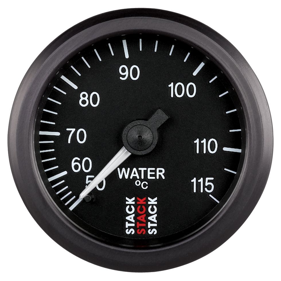 Stack Instruments Series, Gauge, Water Temp, Mechanical, 52mm, Black, 50-115 Degrees C, 3/8" Bspt (M)