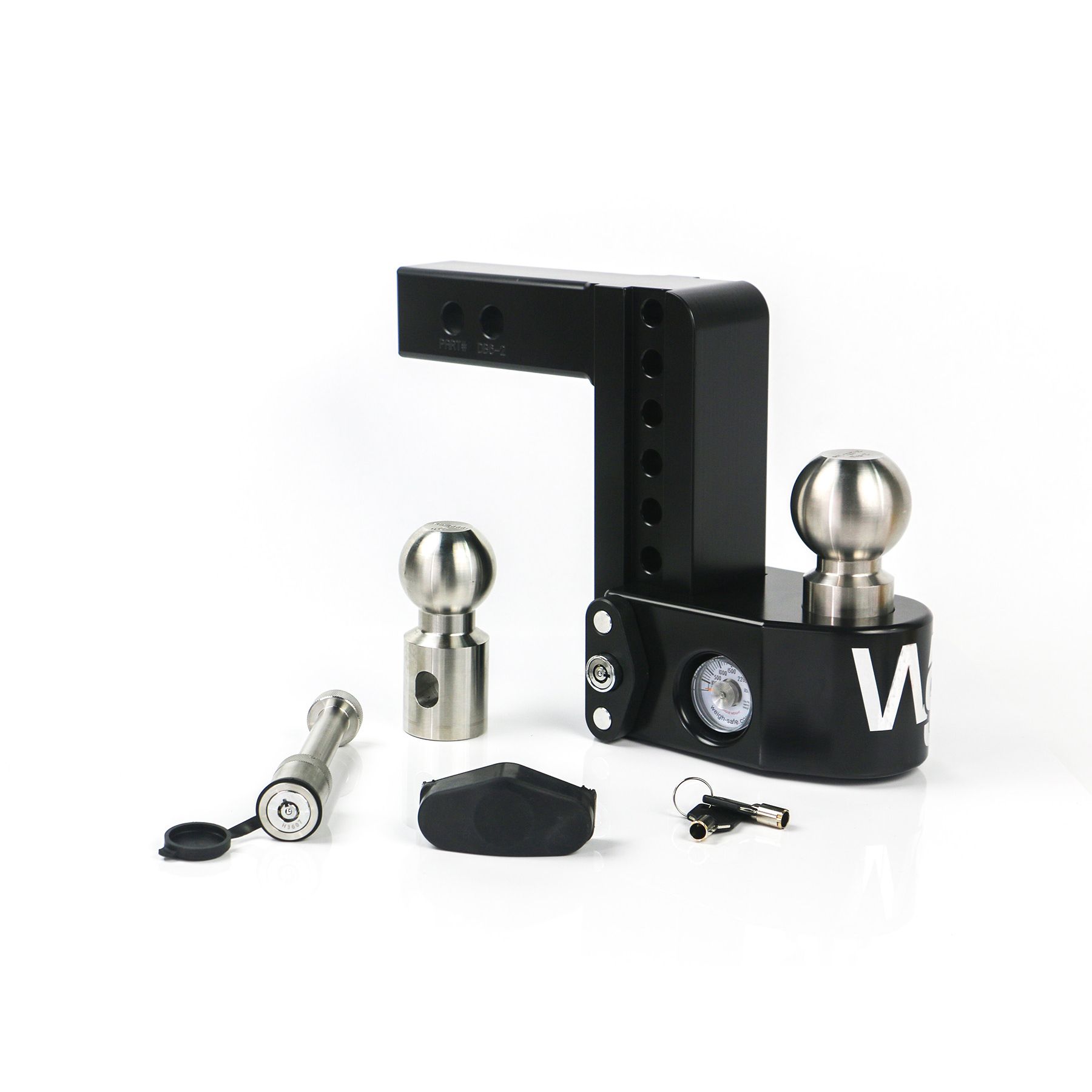Weigh Safe Black Cerakote Aluminum Adjustable Ball Mount – Features Built-in Scale to Measure Tongue Weight – 6" Drop & 2" Shank with Keyed-Alike Hitch Locking Pin