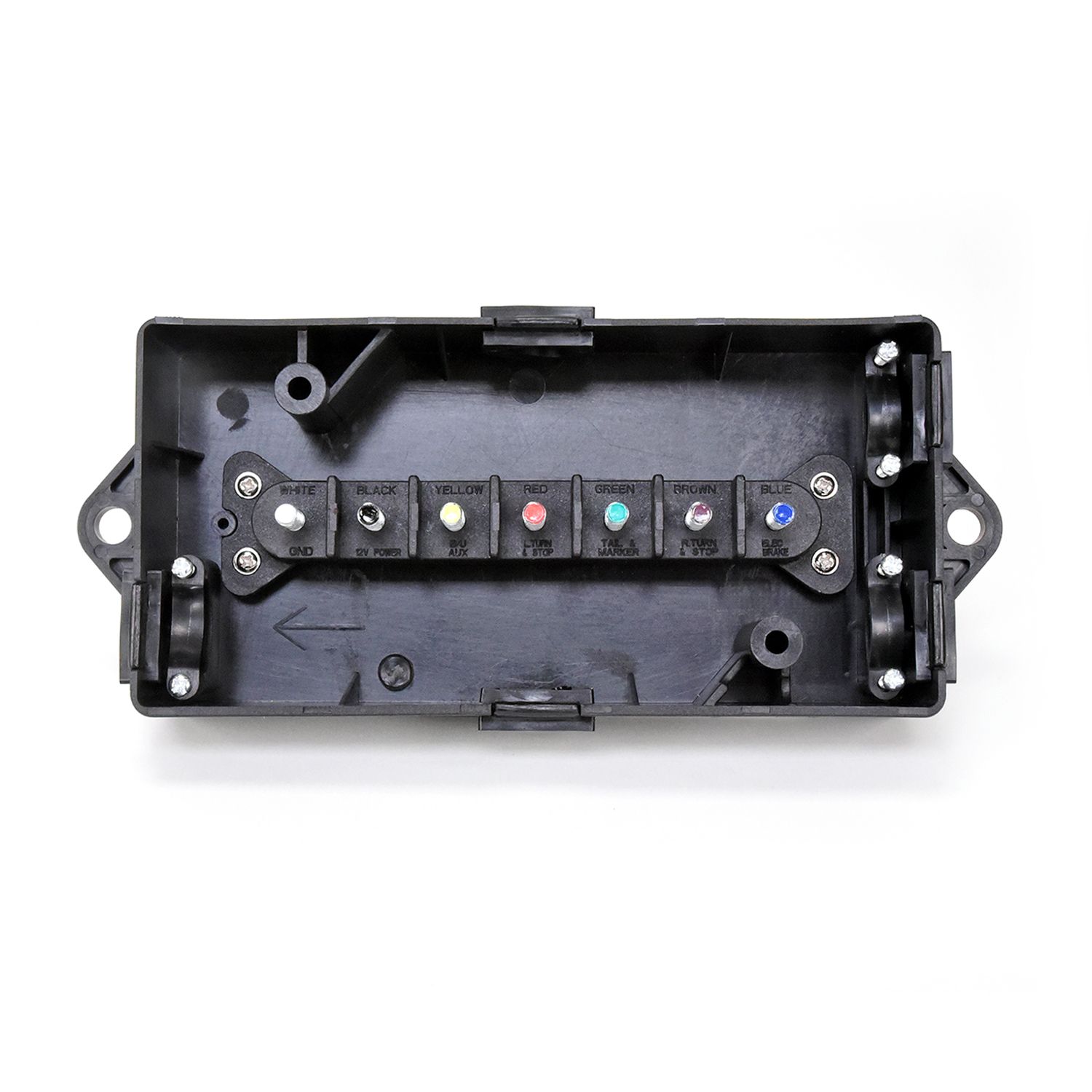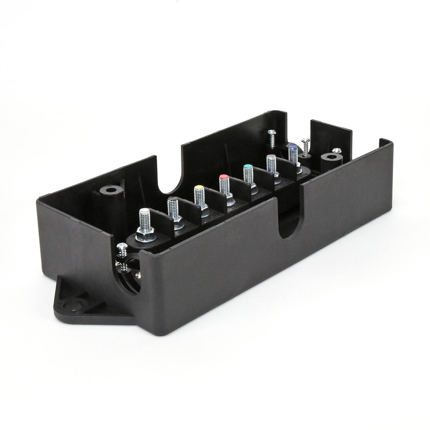Attchs 7 Wires 8-1/4 IN L x 3.44 IN W x 2-3/8 IN H Mntg Hole Dst 8.56 IN From Center to Center/ 1/4 Mntg Hole Dia/ 1/2 IN Rubber Gromt Hole Dia Incl 5 Open Rubber Gromts/ 5 Clsd Rubber Gromts/ 2 Screws/ 3 Strain-Relief Clmp Blk Nylon