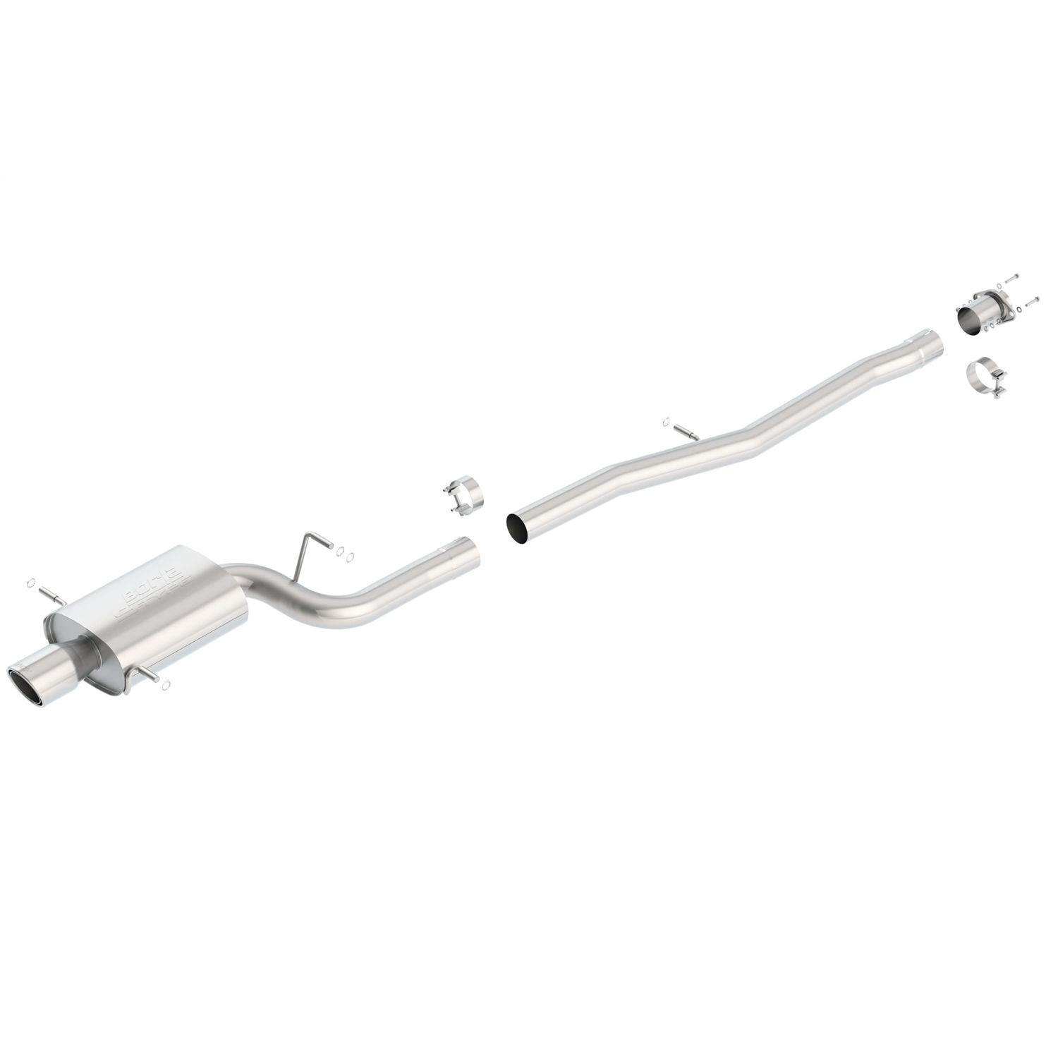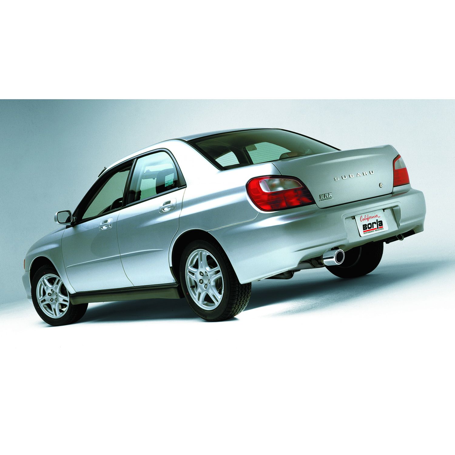 Part# 140075 is the more Aggressive "S-Type" Cat-Back(tm). The mellow "Touring" Cat-Back(tm) exhaust is part# 140053 Borla(r) Performance once again leads the industry with a high flow performance exhaust for the hot Subaru WRX and WRX STI. This Cat-Back(tm) system, Borla(r) #140075, is custom designed by Borla(r) engineers for the 2.5L turbocharged 4-cylinder engine with automatic and manual transmissions. Winning on racetracks around the world has given Borla(r) a leg up on the competition with trickle down technology from the world's fastest cars. The unique design is a direct bolt-on fit that meets all emission requirements. The system has shown significant flow and performance improvements by virtue of Borla(r) XR-1 patented technology utilizing 3" tubing that exits with a super looking Borla(r) logo embossed 4"angle cut, rolled edge, single round polished T-304 stainless steel tip. More flow means more power, and if you tune this turbocharged super import, that flow will simply allow even more power. When you get a close look inside this muffler, you can see the patented Borla(r) XR-1 multi cores — that look says total performance. Increased fuel mileage is an added benefit. And, one more thing, it has a great sound, too, but then you've come to expect that from Borla(r). Add a Borla(r) header (#17217) for even more performance. Borla(r) Performance Industries, the original pioneers of high quality T-304 austenitic stainless steel (superior to T-409 or aluminized steel) free flow exhaust utilizes its patented award and race winning technology to deliver quality, sound, performance gains and enhanced fuel economy all with an easy bolt-on installation. All Borla(r) street products carry the famous Borla(r) written million-mile warranty.