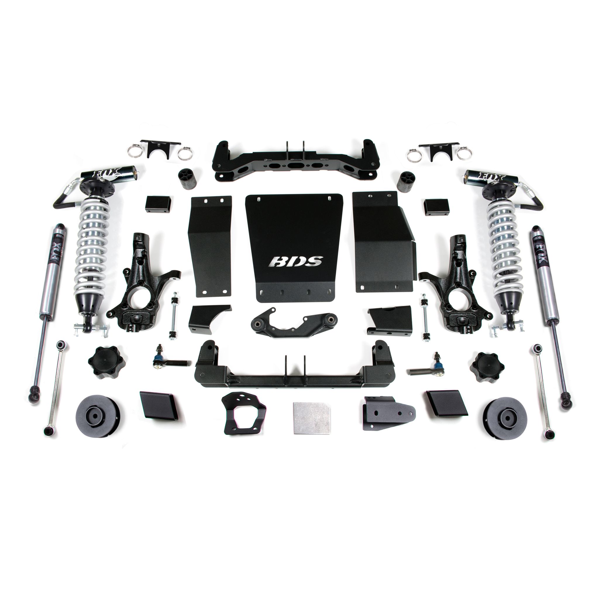 <p>Upgrade the performance and capability of your 2015-2019 Chevy Suburban, or Tahoe and GMC Yukon 1500 with 4-inch coil-over suspension lift kit by BDS. These kits feature proprietary FOX 2.5 coil-over shocks designed specifically to bolt-on performance for increased travel and the ability to soak up the roughest terrain along with smooth on-road comfort. Designed to improve stance, performance, and capability, this kit includes everything necessary to set your truck up right with clearance for up to 33" tires</p>