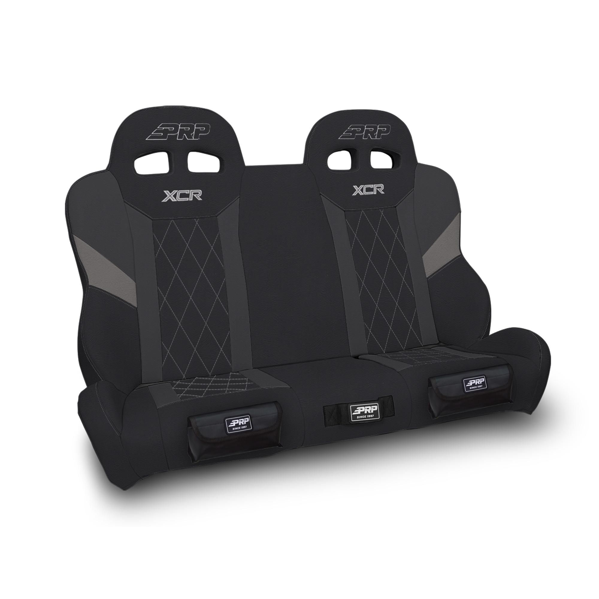 EXT: XCR Quick Release Rear Suspension Bench Seat with Diamond Stitch and Front Pockets for Polaris RZR PRO XP4, PRO R4, Turbo R4, Black & Grey