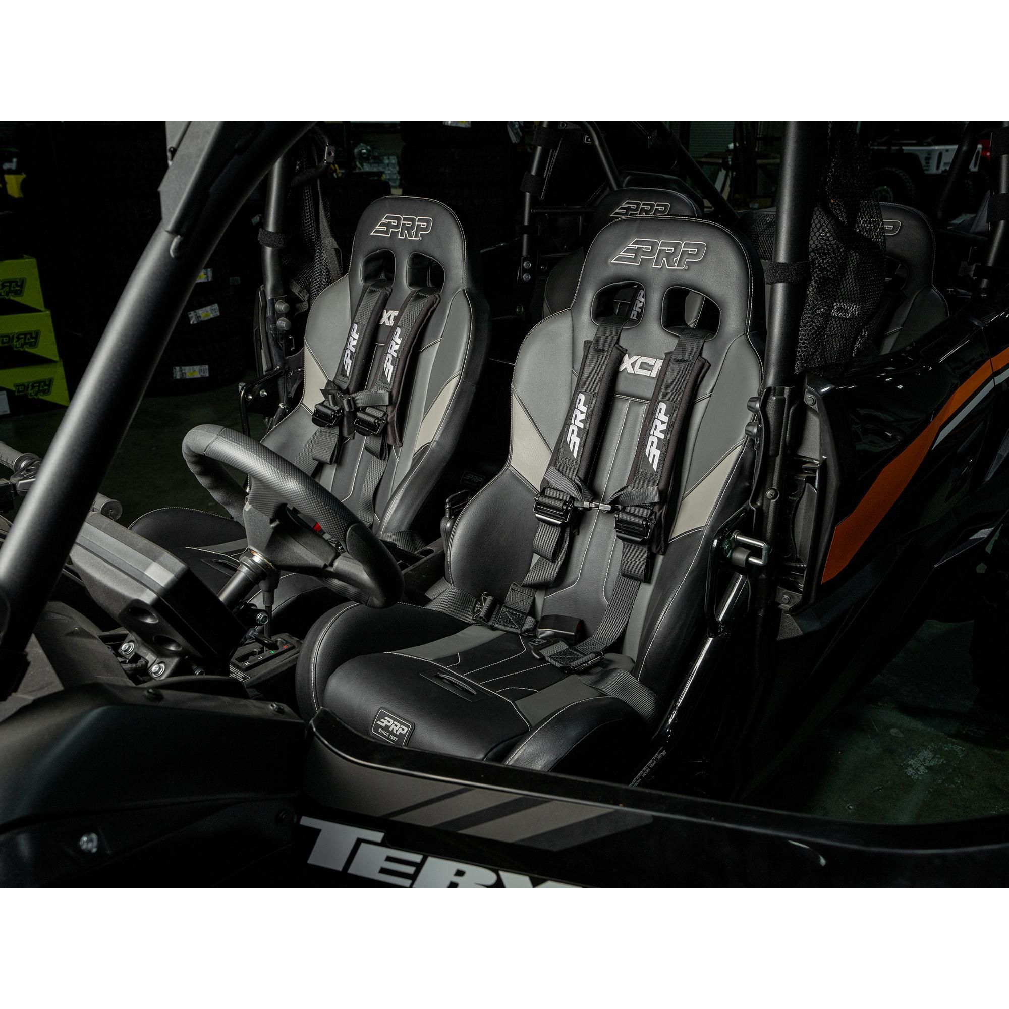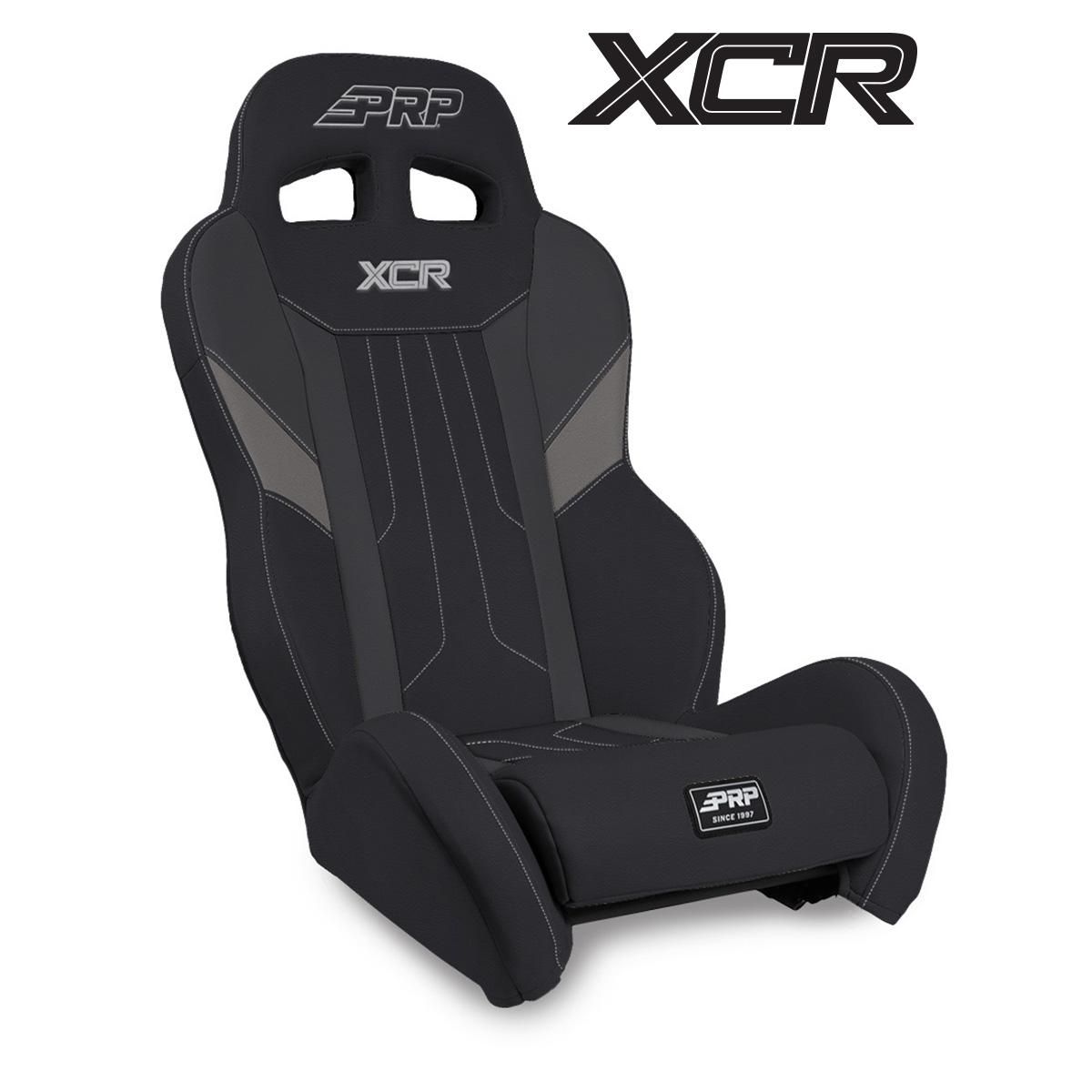 The XCR Suspension Seat combines comfort with modern styling for your UTV. Featuring low side containment – so you can easily jump in, get strapped in, and go ride! The XCR features low side bolsters towards the front that gives you some containment for when the ride gets rough. But the seat has open bolsters at the hips, which allow you to use most UTV's 3-point OEM seat belts, and make it easy to use with retractable harnesses. These low sides make it much easier to get in and out of the vehicle and to get lap belts tightened. Perfect for trail or dune rides when you are constantly jumping in and out during stops. The seats vinyl-coated nylon suspension liner and dual-density foam decrease the impact on the body, reducing the fatigue you feel after a long day in the dirt or dunes. So you can drive farther in rough terrain with more comfort. PRPs 3-layer gel infused bottom cushion keeps you comfortable on long rides. The cushion is removeable so you can take it out when cleaning and allows water, mud, sand, and dirt to drain out the bottom, rather than pile up in the seat. Features a 5th point slot if you use 5-point harnesses. The XCR Headrest features dual slot harness openings. This gives the seat a modern and aggressive look, while also making it easier to run harnesses and comm lines through. A wider shoulder area that won't pinch your torso into the seat or push your shoulders forward. Built in lumbar support means that your back will thank you after a long day of riding. Overall this seat is great for trail or dune riding, or when you’re constantly getting in and out on rides. Made from durable and UV resistant vinyl. Don't forget to complete your UTV interior! Get a set of matching XCR Rear Seats, Folding Rear Seats, or Rear Bench. Then add more storage to your UTV with PRP's UTV Storage Bags. Proudly Made in the USA. FITMENT: Front Seats – Fits into the Polaris General, General 4 (Front or Rear), XPEDITION, RZR S 900, RZR S4 900, 900 Trail, Trail