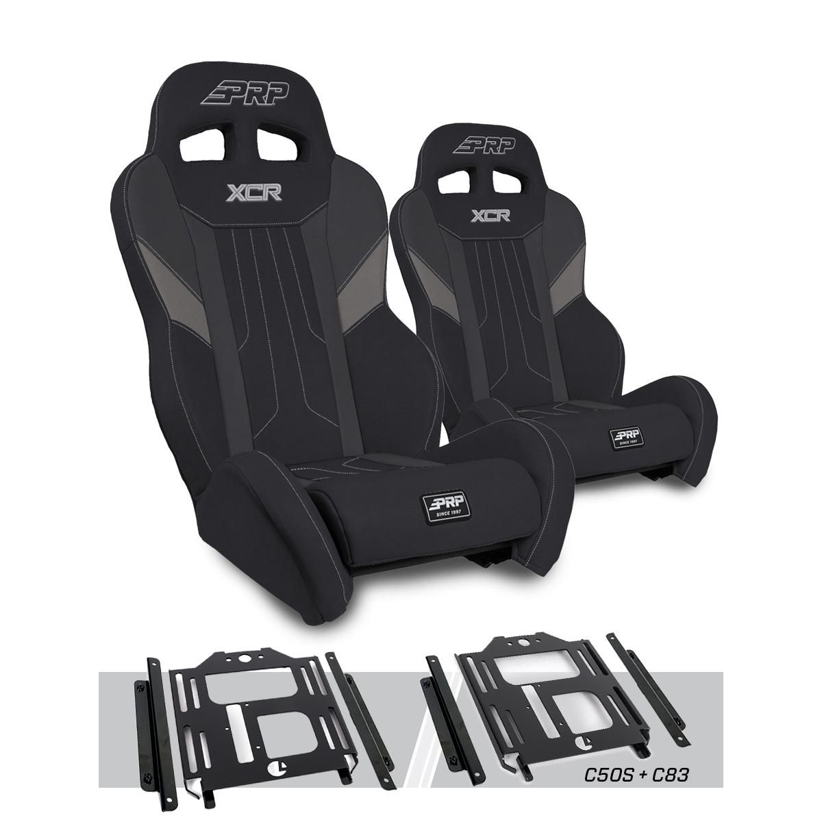 XCR Suspension Seats Kit for Polaris RZR 570, 800, 900 (Pair), Black & Gray