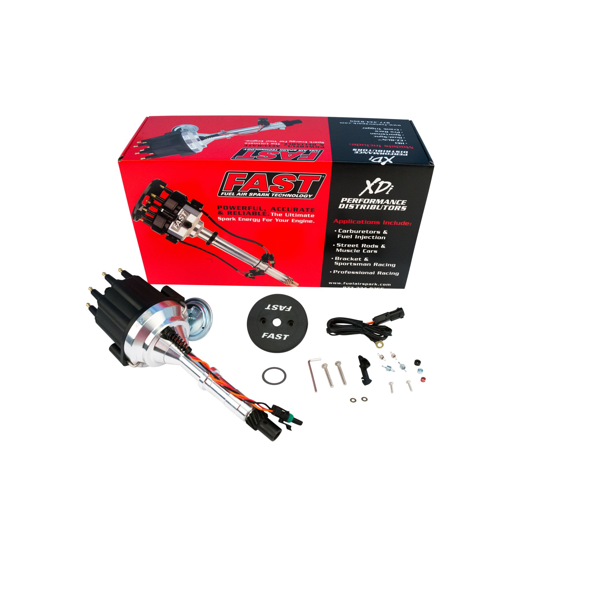 FAST XDi EZ-Run Distributors come in a convenient package that saves time and space as they do not require an ignition box to fire the coil, while a standard-size cap offers more firewall and manifold clearance than HEI-style distributors. In addition, each billet distributor features mechanical and vacuum advance for easy setup, along with a built-in electronic module that can directly fire an ignition coil, plus provide accurate, dependable and maintenance-free operation. A perfect choice for daily drivers, muscle cars and street rods alike, XDi EZ-Run Distributors are available for most domestic V8 applications.