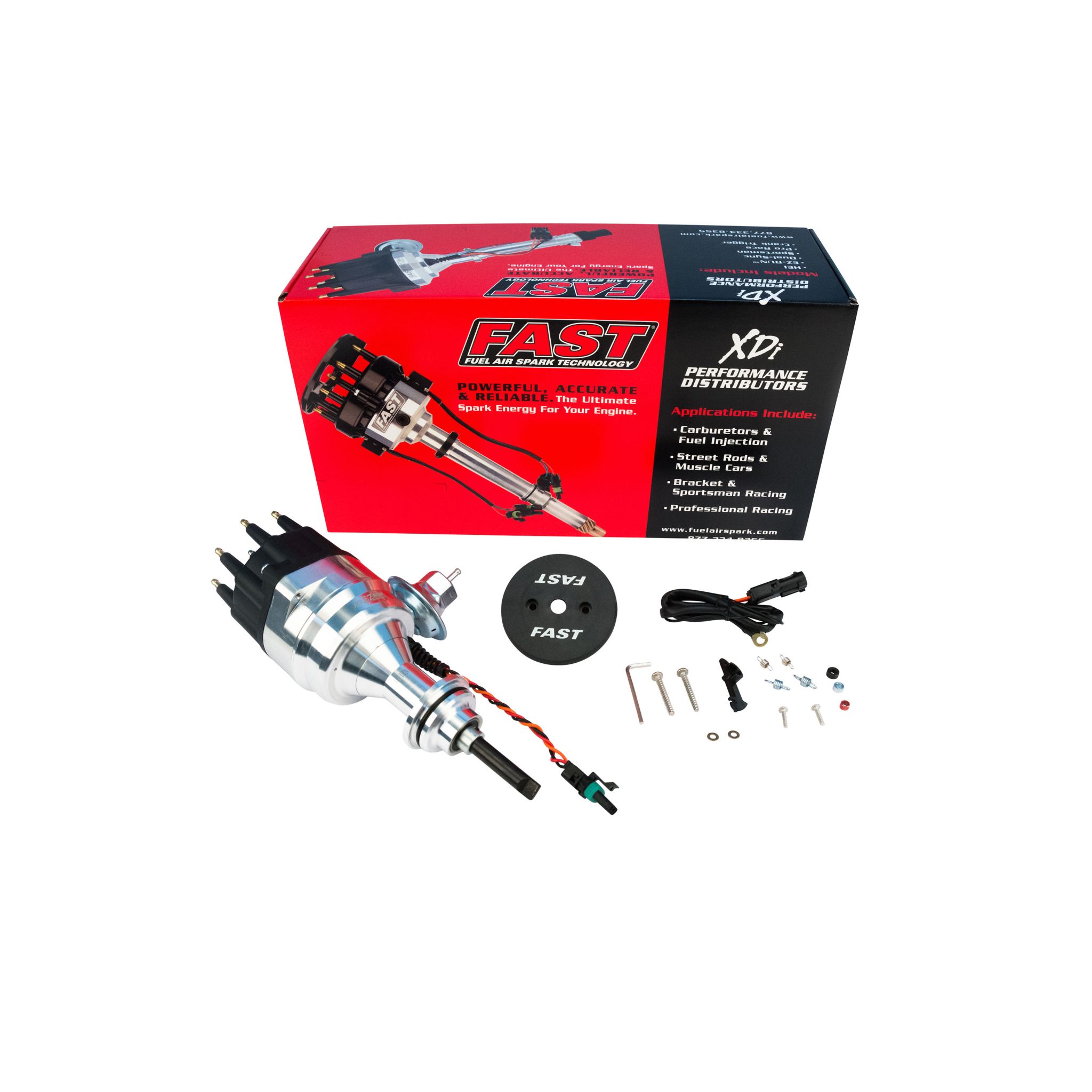 FAST XDi EZ-Run Distributors come in a convenient package that saves time and space as they do not require an ignition box to fire the coil, while a standard-size cap offers more firewall and manifold clearance than HEI-style distributors. In addition, each billet distributor features mechanical and vacuum advance for easy setup, along with a built-in electronic module that can directly fire an ignition coil, plus provide accurate, dependable and maintenance-free operation. Distributors are available for most domestic V8 applications. XDi EZ-Run distributors are designed to save time, space while also offering accuracy and reliability that is unmatched in its class. A perfect choice for daily drivers, muscle cars and street rods alike, XDi EZ-Run