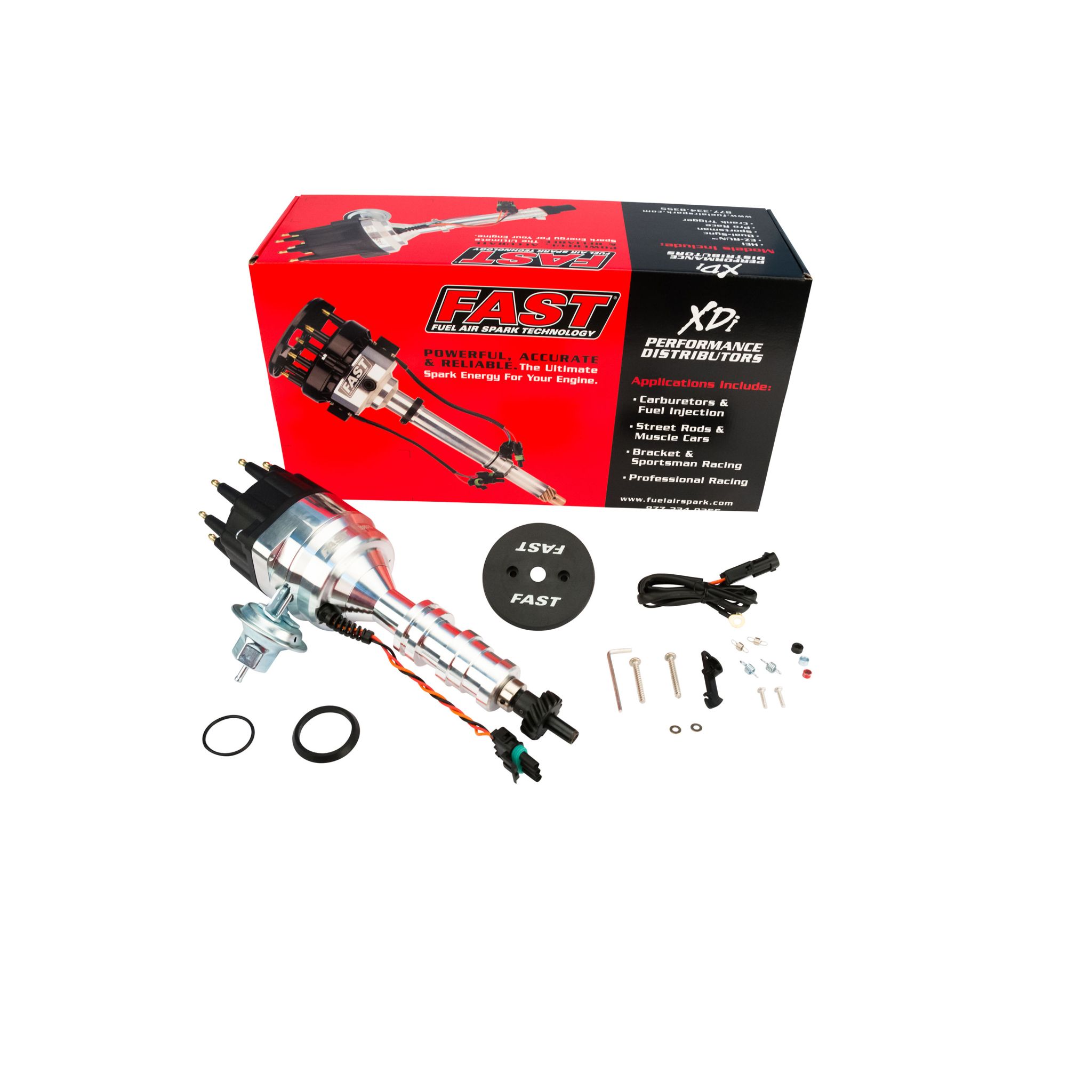 FAST XDi EZ-Run Distributors come in a convenient package that saves time and space as they do not require an ignition box to fire the coil, while a standard-size cap offers more firewall and manifold clearance than HEI-style distributors. In addition, each billet distributor features mechanical and vacuum advance for easy setup, along with a built-in electronic module that can directly fire an ignition coil, plus provide accurate, dependable and maintenance-free operation. Distributors are available for most domestic V8 applications. XDi EZ-Run distributors are designed to save time, space while also offering accuracy and reliability that is unmatched in its class. A perfect choice for daily drivers, muscle cars and street rods alike, XDi EZ-Run