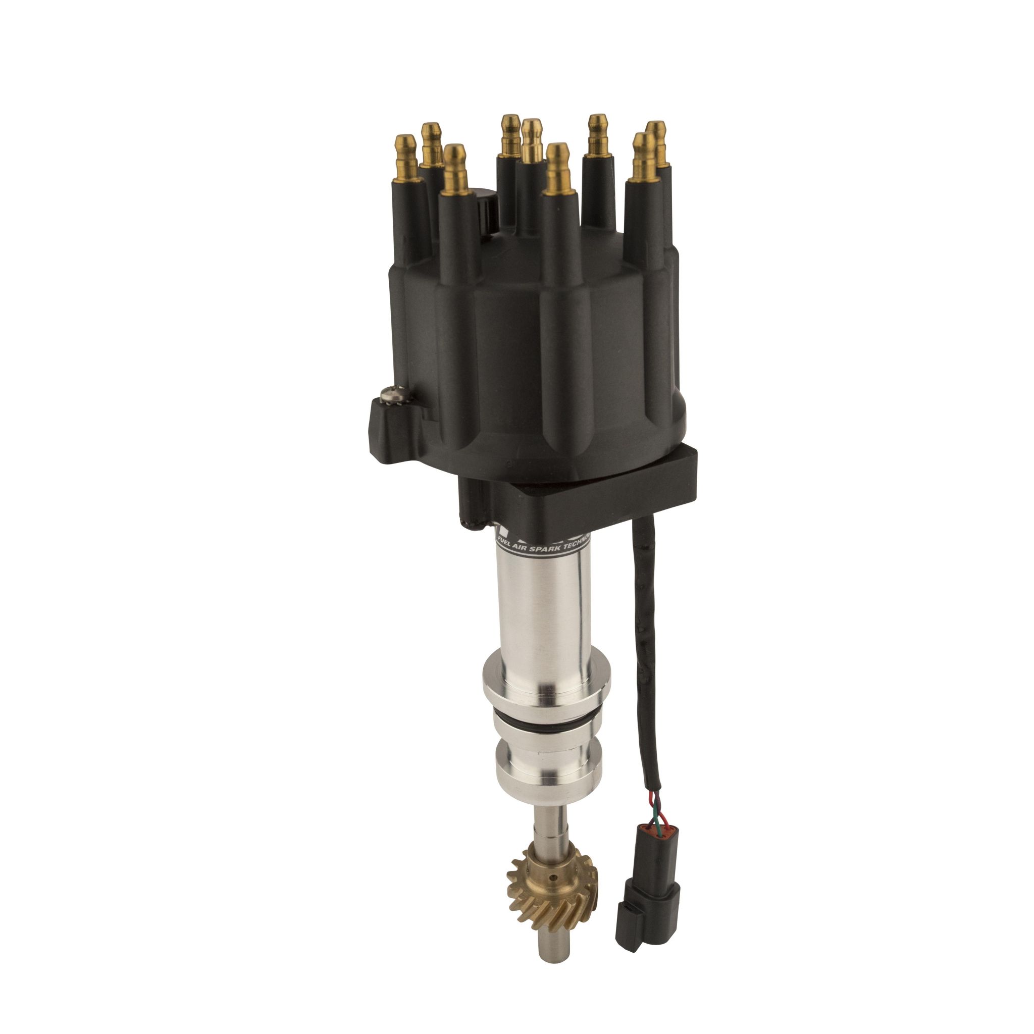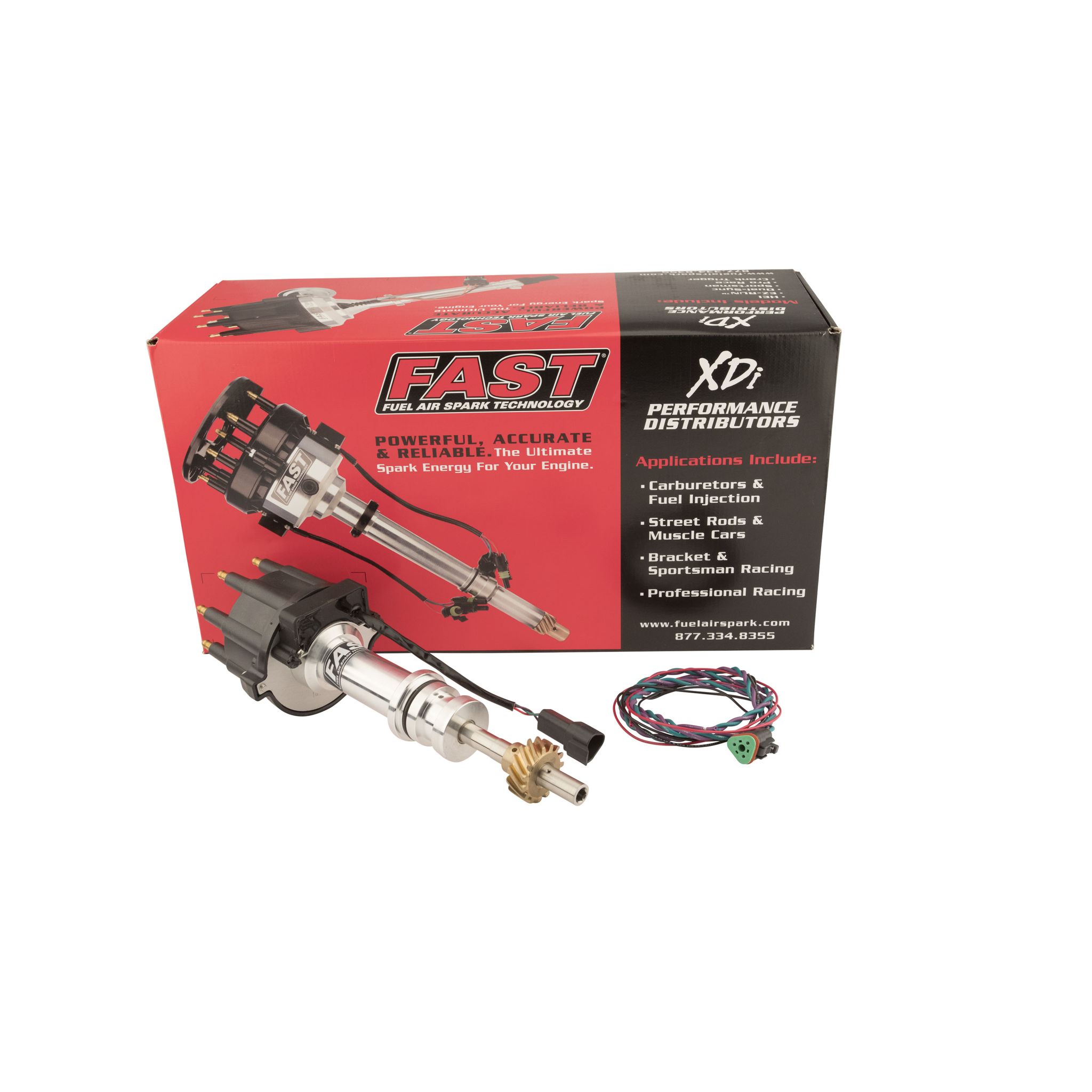 The new FAST XDi Race EFI Distributors? premium quality construction and advanced optical trigger maintain an industry best ?-degree accuracy throughout the rev range: ideal for high RPM EFI applications. Designed for applications that are equipped with a crank trigger, the FAST XDi Race EFI Distributor is a drop-in solution for supplying an accurate camshaft signal to your electronic fuel injection system. Crafted from quality components such as its billet housing, precision ground stainless steel shaft and premium bearings, the XDi Race distributor ensures consistent shaft end-play, while its advanced hall-effect optical trigger supplies the signal. Accurate to ? degree, the FAST XDi Race Distributor?s hall-effect optical trigger is superior to archaic 2-wire inductive pick-up designs. Unlike the competition?s 2-wire pick-ups, the FAST hall-effect optical trigger?s signal output will not fluctuate at high RPM: a must for high-end street and racecars. Featuring durable hand-assembled components, an advanced pick-up design and first in class signal accuracy, the FAST XDi Race EFI Distributor is setting a new standard for EFI distributors. The FAST XDi Race EFI Distributor ships with a high quality rotor, a precision-machined bronze gear and is available in many popular applications with either a small or large diameter distributor cap.