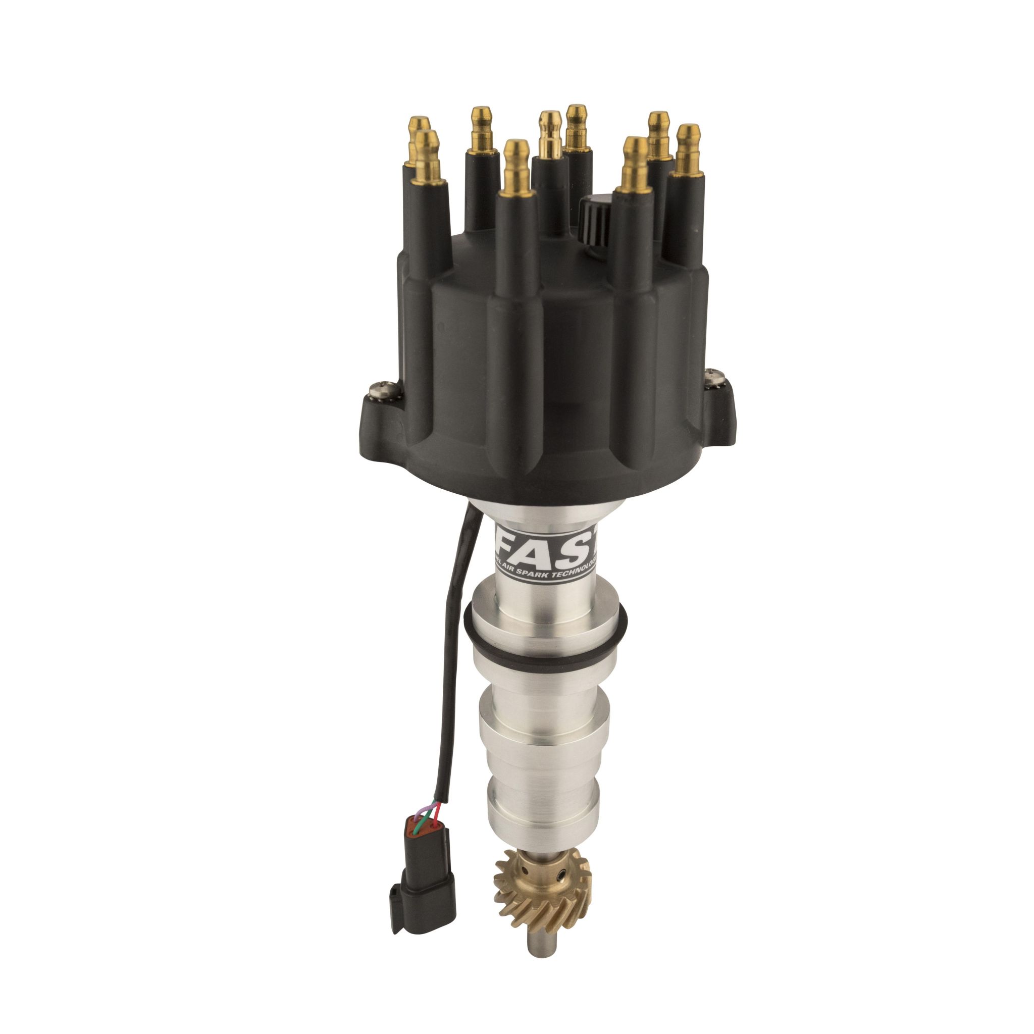 The new FAST XDi Race EFI Distributors? premium quality construction and advanced optical trigger maintain an industry best ?-degree accuracy throughout the rev range: ideal for high RPM EFI applications. Designed for applications that are equipped with a crank trigger, the FAST XDi Race EFI Distributor is a drop-in solution for supplying an accurate camshaft signal to your electronic fuel injection system. Crafted from quality components such as its billet housing, precision ground stainless steel shaft and premium bearings, the XDi Race distributor ensures consistent shaft end-play, while its advanced hall-effect optical trigger supplies the signal. Accurate to ? degree, the FAST XDi Race Distributor?s hall-effect optical trigger is superior to archaic 2-wire inductive pick-up designs. Unlike the competition?s 2-wire pick-ups, the FAST hall-effect optical trigger?s signal output will not fluctuate at high RPM: a must for high-end street and racecars. Featuring durable hand-assembled components, an advanced pick-up design and first in class signal accuracy, the FAST XDi Race EFI Distributor is setting a new standard for EFI distributors. The FAST XDi Race EFI Distributor ships with a high quality rotor, a precision-machined bronze gear and is available in many popular applications with either a small or large diameter distributor cap.