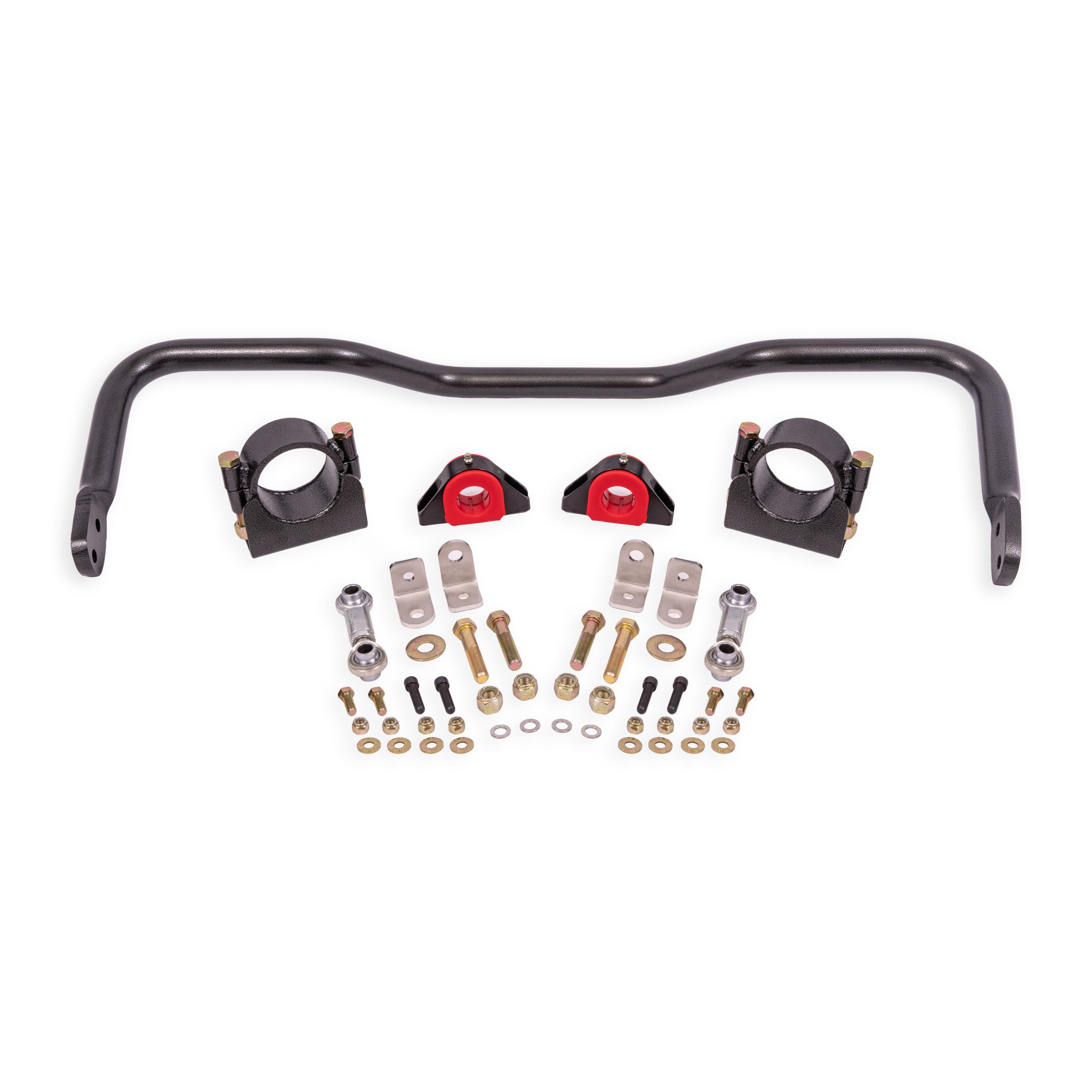 Hard launches from high horsepower cars at the drag strip require more than just a normal street-style sway bar. BMR Suspensions Xtreme Anti Roll Bar for 1964-1972 GM A-Body allows you to launch harder without excessive body roll limiting traction, with little sacrifice to your A-Bodys street manners. Manufactured from 1.375-inch solid bar stock, BMRs Xtreme Anti Roll Bar (XSB006) is designed to eliminate body roll and transfer as much power as possible to the rear wheels. The XSB006 attaches to your A-Body with polyurethane bushings. These bushings are molded from 88-durometer, low-deflection, polyurethane, and are internally fluted to keep grease in the bushing under high compression loads. BMR Suspension designed the XSB006 sway bar for street performance and drag race applications. The large adjustable sway bar has two positions, giving you the versatility to drive to and from the track with the same sway bar. The XSB006 gives you a massive increase in rate over the stock bar (depending on year and model). These rate increases and adjustability allow you to almost eliminate body roll so you can leave the starting line harder with maximum traction. When performance is a must, rely on BMR Suspension! BMR Suspensions XSB006 anti roll bar is available in black hammertone and red powdercoat for long-lasting good looks. Installation time is about 1-2 hours. Proudly made in the U.S.A.!