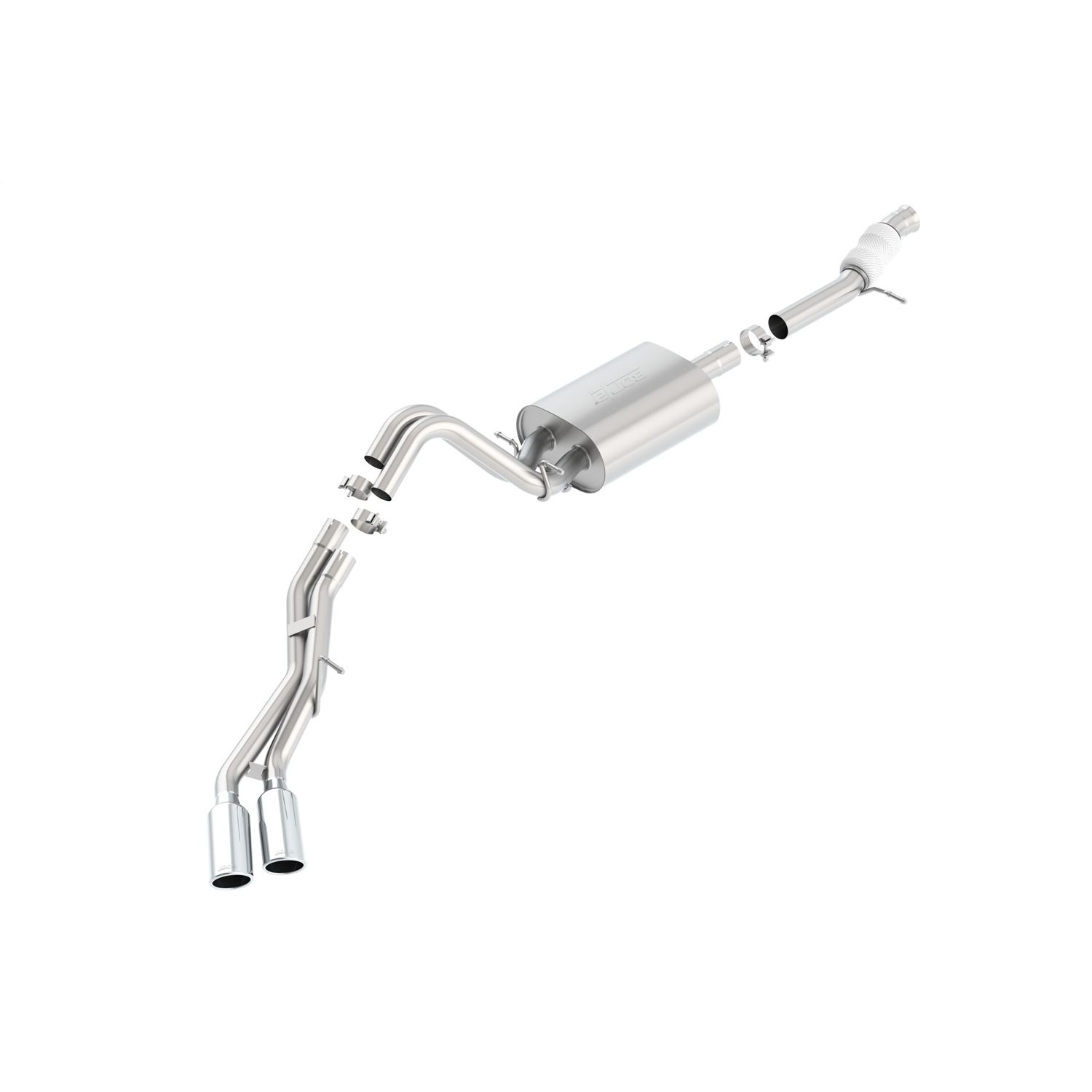 Features bright chrome on T-304 stainless steel tips. Borla(r) Cat-Back(tm) & Axle-Back exhaust systems feature patented straight-through and multi-core technology designed to unleash hidden horsepower. Increased exhaust velocity adds power, driving excitement, fuel economy, and the distinctive Borla(r) Sound of Power respected by motoring enthusiasts everywhere. Each system is built from premium T-304 stainless steel, superior to T-400 series knockoffs (such as 409), to give you the absolute best in performance and durability. Ultra-smooth mandrel bends ensure maximum flow & power, and precision computer-controlled CNC manufacturing ensures an accurate fit. Best of all, Borla(r) stands behind every system with a Million-Mile Warranty. Just what you'd expect from the world's most experienced (and most winning) exhaust brand.