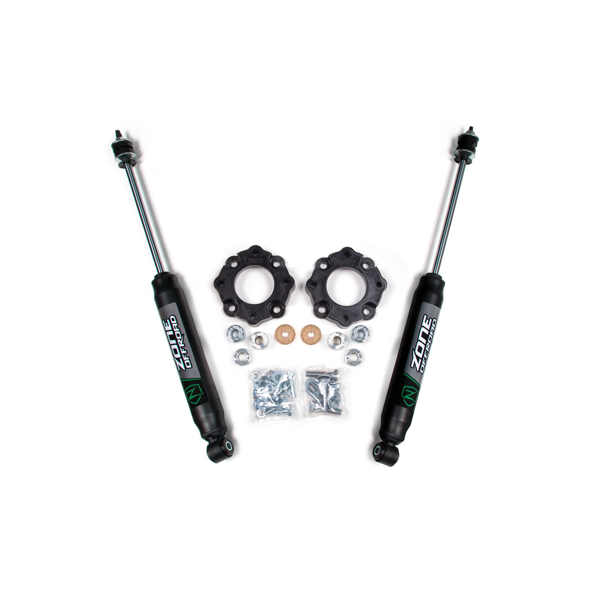 Get the leveled look you want for your new 2022 Tundra with this 2" Leveling Kit that will let you clear 33" tires. This kit is easy to install and does not require a strut compressor or dissassembly of the factory strut. Included along with the polyurethane strut spacers are skid plate drop spacers to allow the factory skid plate to be retained, plus sway bar drop spacers and extended front bump stops to create a full solution that does not sacrifice performance. Upgrade the rear shocks to match the added capability of the front with either Nitro gas charged shocks or Fox 2.0 Adventure Series shocks.