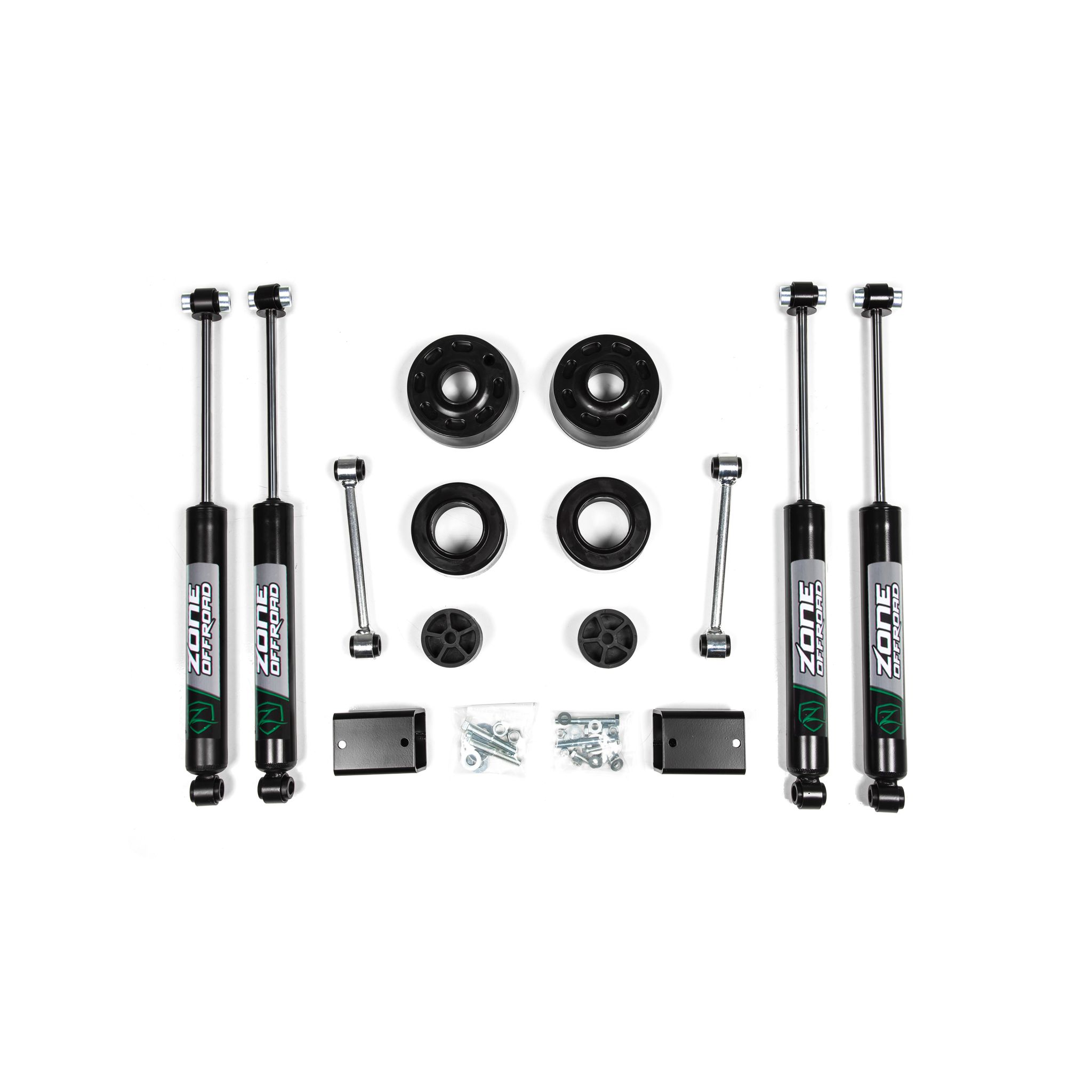 ***See Pre-Installation Check in the Instructions to verify fitment*** Take your Wrangler JL to new heights with this 2" lift kit from Zone Offroad. This 2" lift kit retains the original ride quality and uses JL-specific polyurethane coil spacers that mount on top of the factory coil springs to provide additional lift while allowing clearance for up to 35" tires. Also included are front and rear bump stop extensions to properly limit up travel and extended length sway bar links to correct sway bar operating angle.
